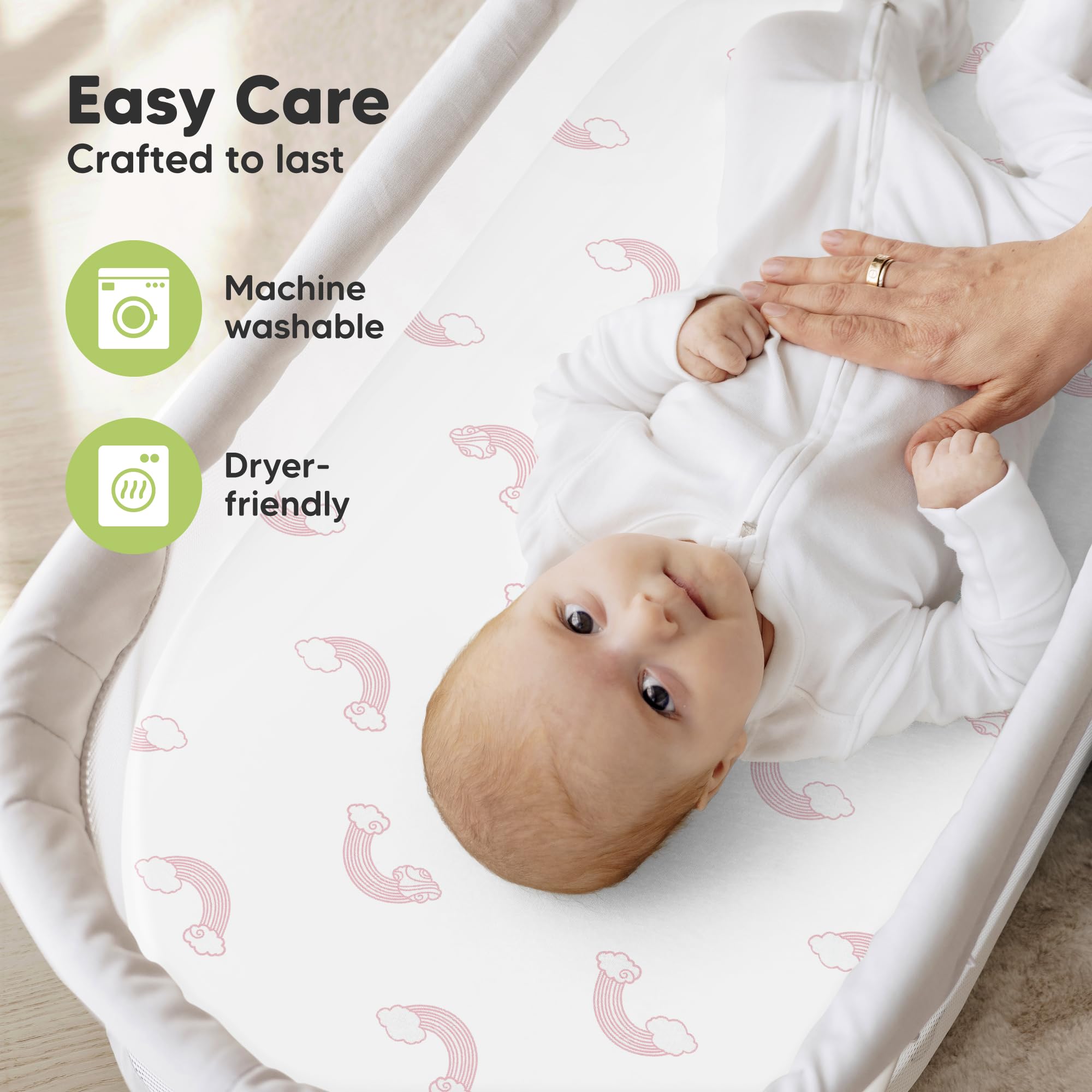 Soft & Breathable - Made of 100% premium quality jersey cotton, the Soothe Bassinet Sheets ensure maximum comfort for your baby during sleep time. Our breathable fitted bassinet sheet is suitable for all skin types, including the most delicate skin.