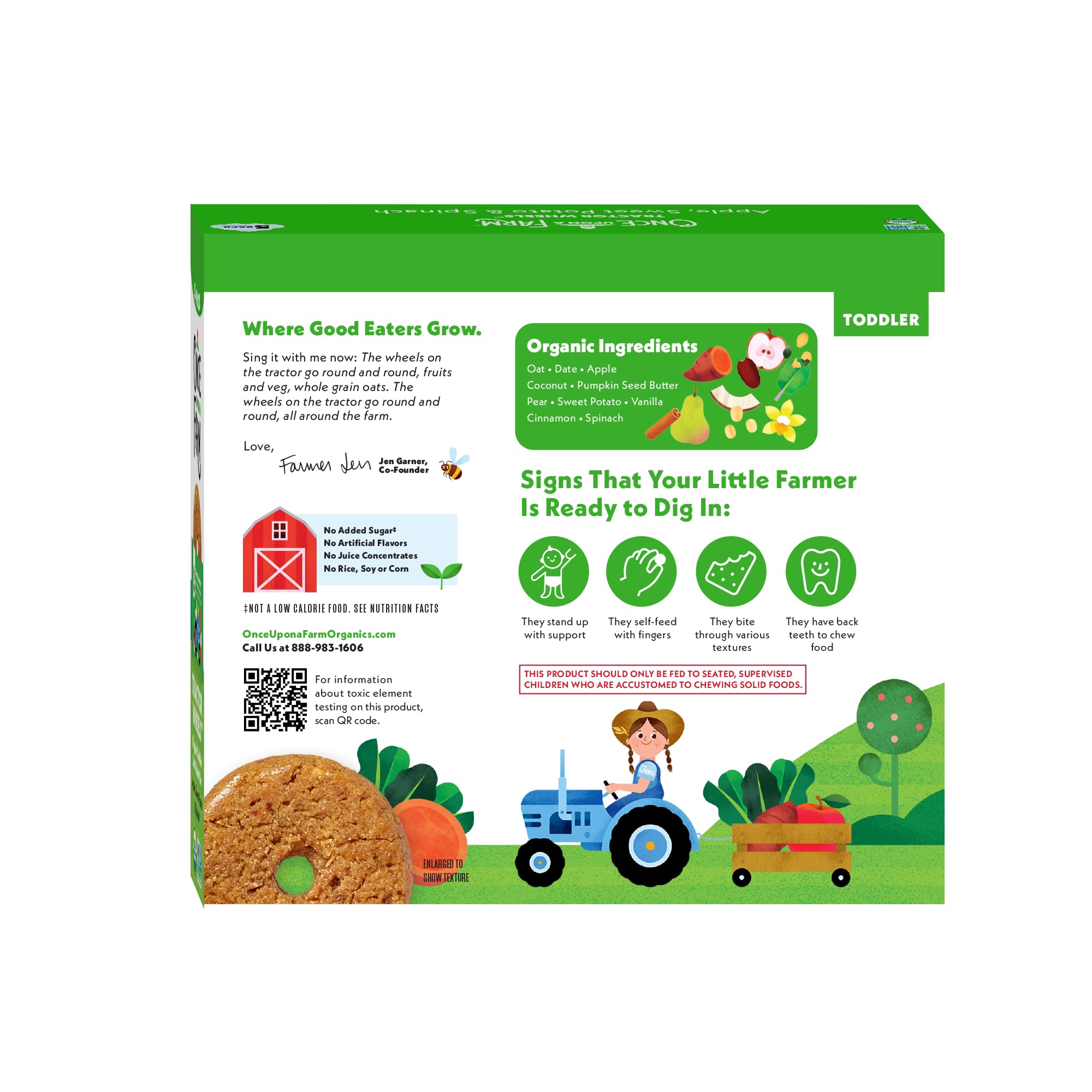 DESIGNED WITH TODDLERS IN MIND: Designed for ages 12+ months. These Tractor Wheel shaped bars fit little hands and encourage smaller bites — perfect for self-feeding. Not a low-calorie food.