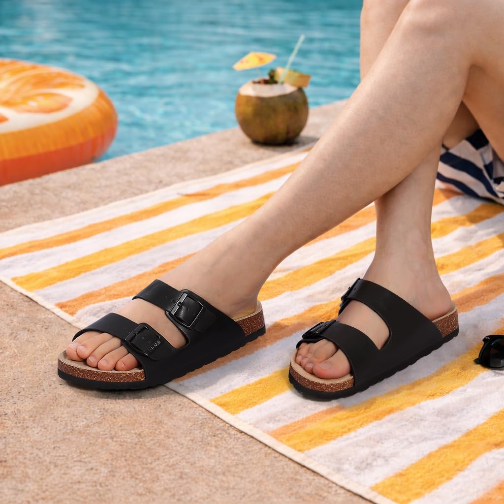 𝐒𝐨𝐟𝐭 𝐂𝐨𝐫𝐤 𝐅𝐨𝐨𝐭𝐛𝐞𝐝: These slip on sandals with natural cork footbed offer cushioning and support, the eco-friendly, lightweight material ensures effortless flexibility for every step.