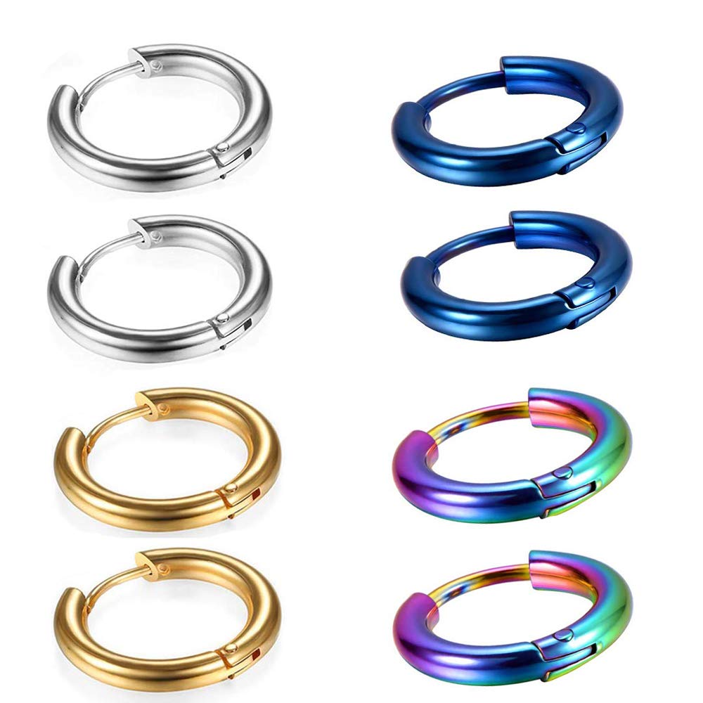 【Hoop Earrings Men Women in Multiple Sizes】Men Earrings Inner Diameter:8mm(5/16 inch).Tubes Thickness Gague:12G(2mm),Post Gague:20G(0.8mm).Multiple Sizes to Meet the Needs of Multiple Piercings,Perfectly Match Your Various Wearing Style, Make You the Focus in the Crowd.