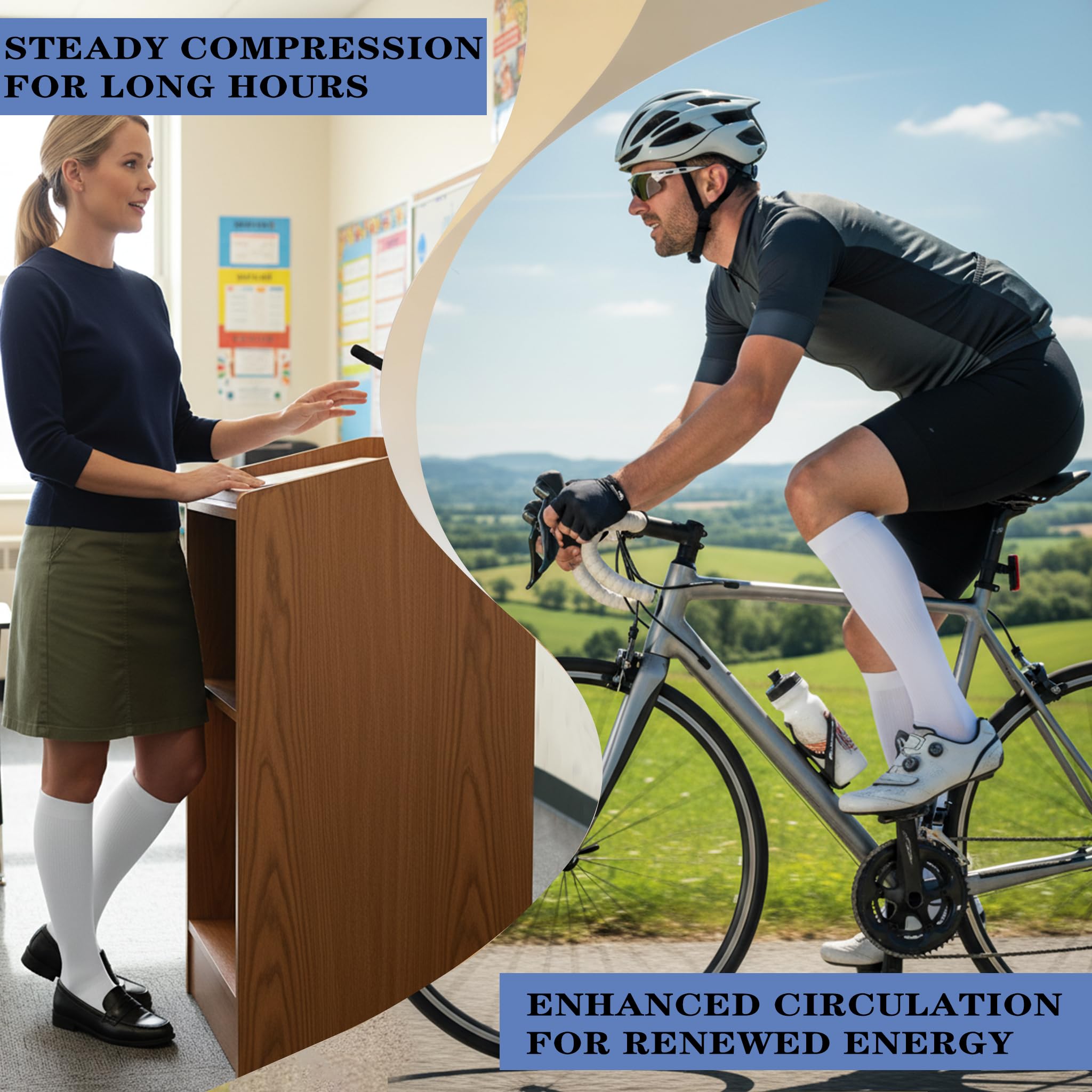 REDUCE INJURIES - Provide mild squeezing for warmness and enhance blood moving through your legs. Remove stress and stimulate every cell, relieves symptoms varicose veins and excess fluid retention. Help relieve pain & discomfort related to plantar fasciitis, Provides true graduated compression to support your legs, reduce fatigue, soreness, cramping and prevent injuries at the same time.