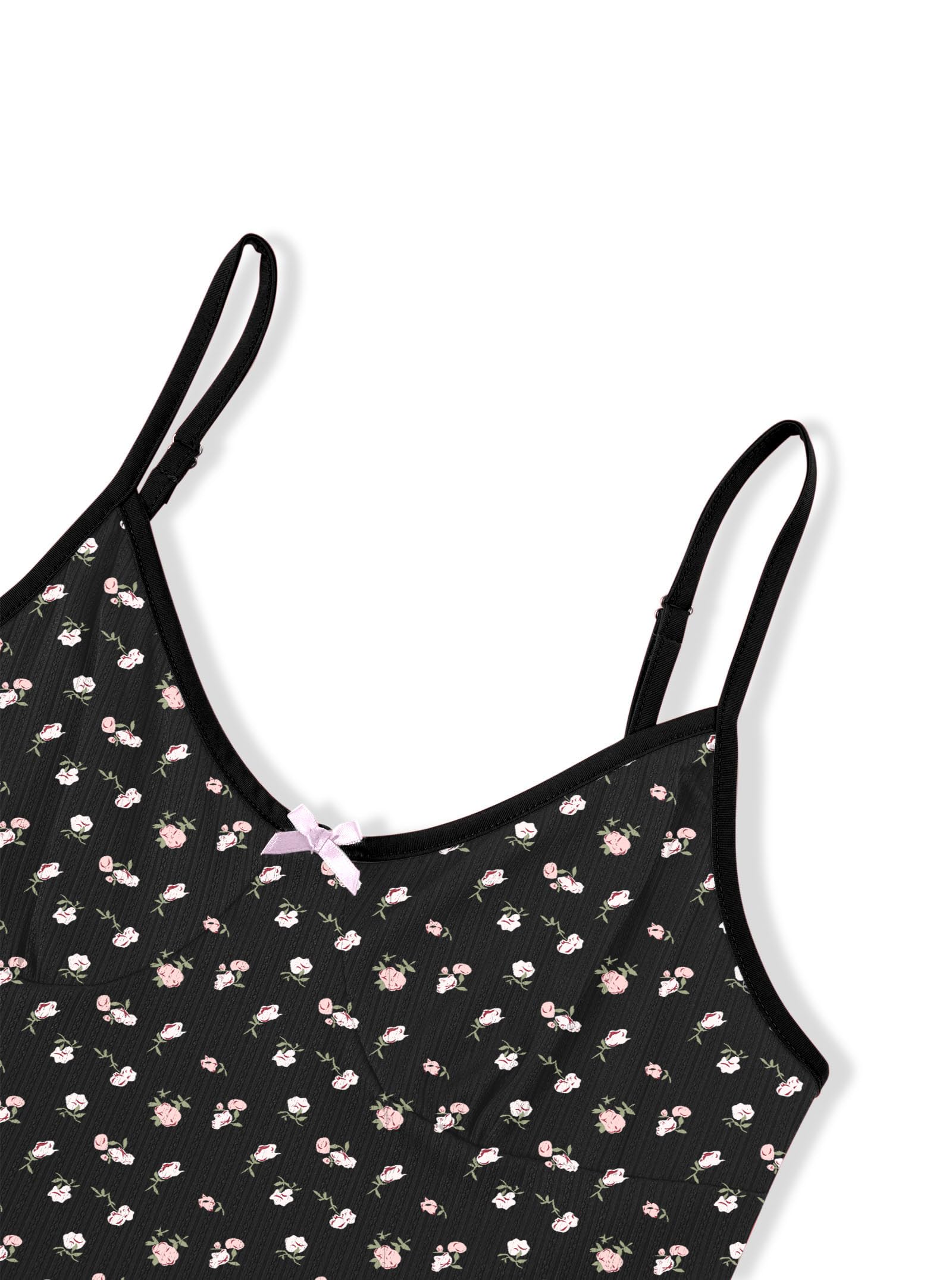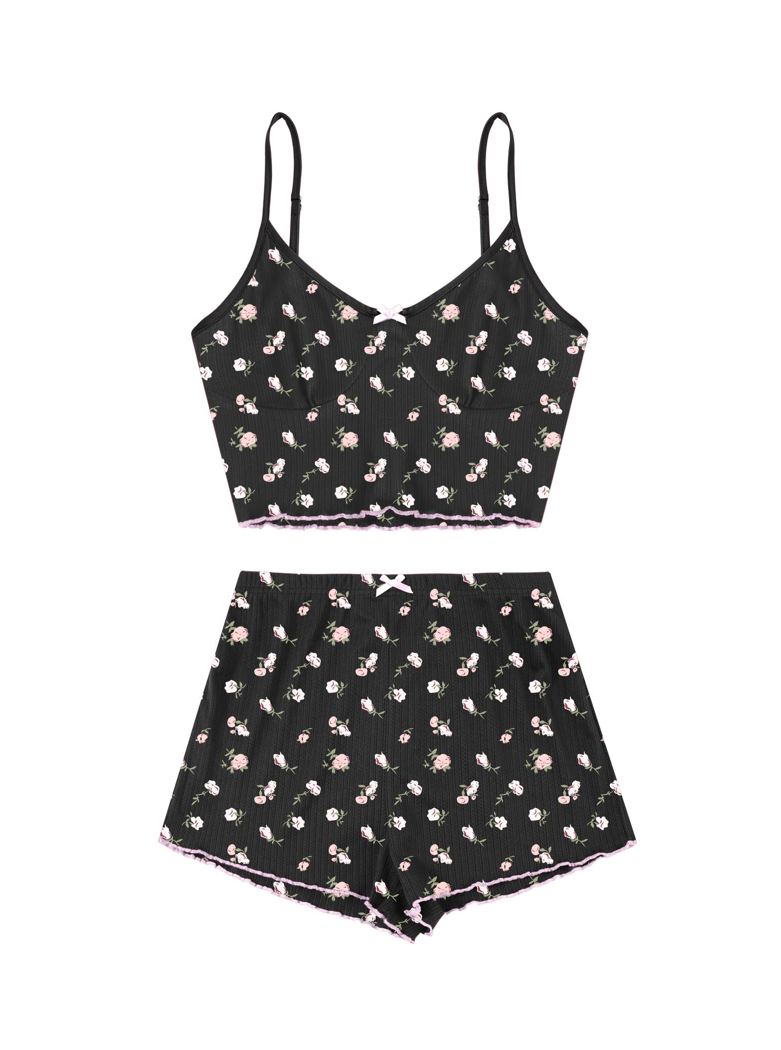 FEATURES: Sexy sleepwear for women, pink floral print, bow tie, sleeveless, adjustable spaghetti straps, crop cami top and shorts set, slim fit, sexy lingerie, 2 piece lounge set
