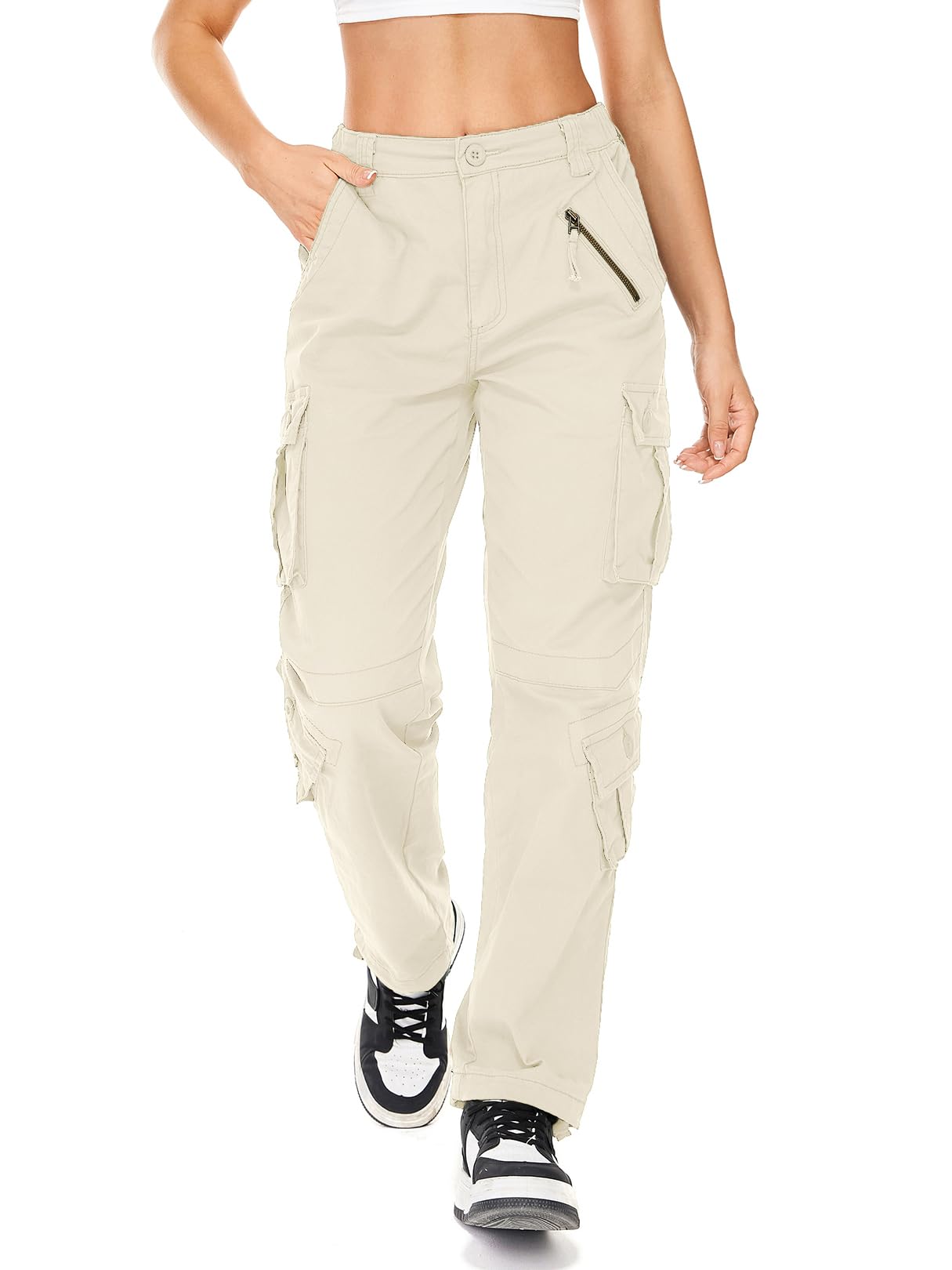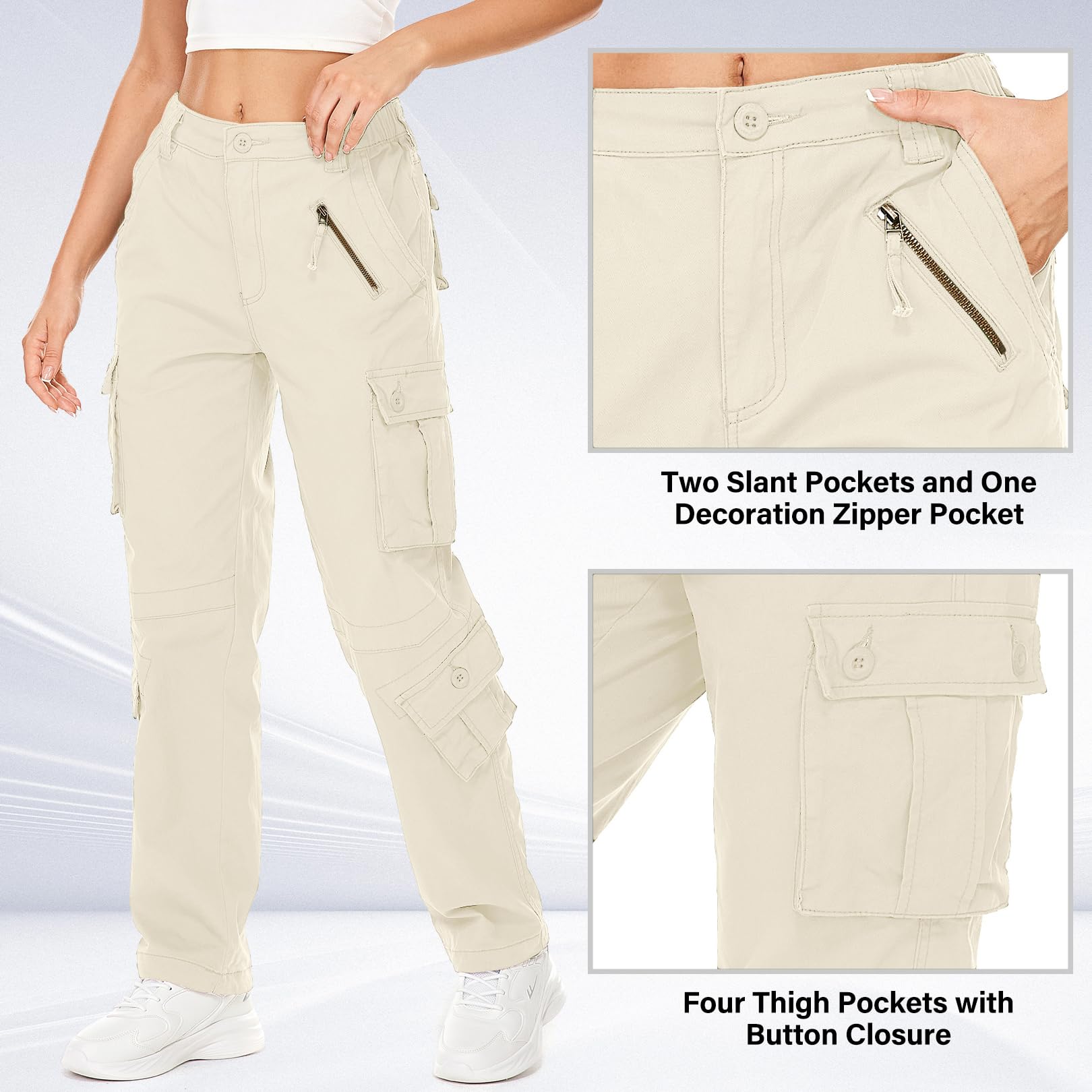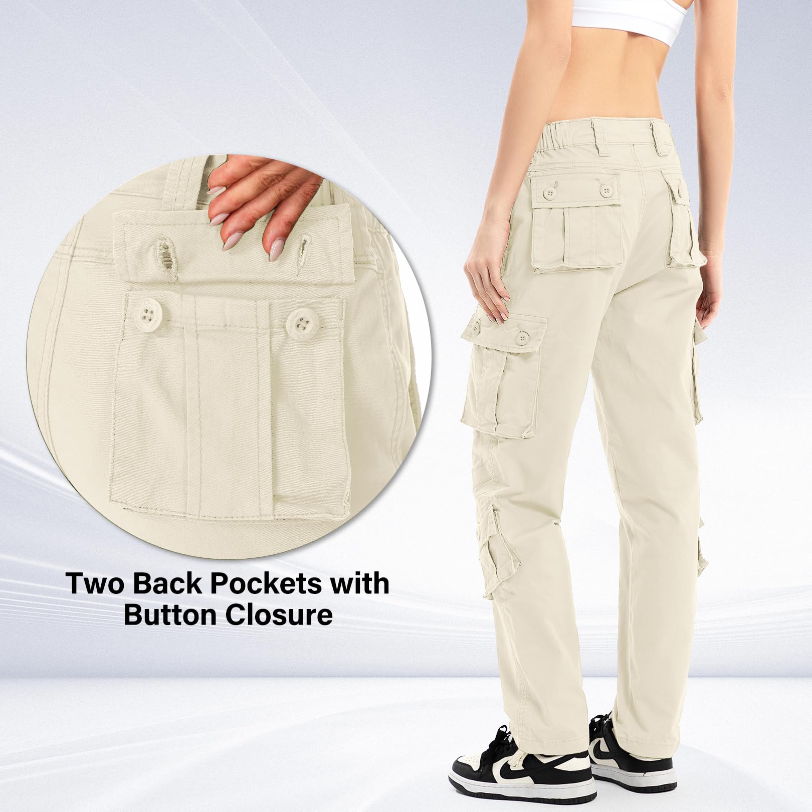 Classic camo pants with Multi-Pocket: Women casual loose pants features 8 Pockets include (2) front hand pockets; (2) buttoned cargo pockets; (2) leg pockets; (2) buttoned rear pockets.