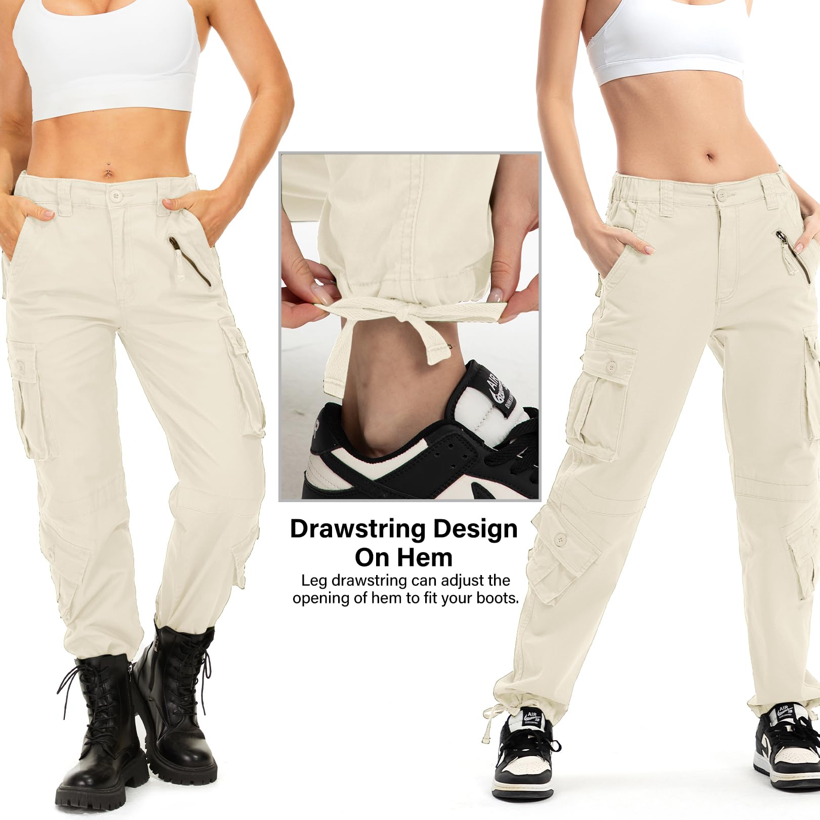Cargo pants for women sits at waist, loose fit, straight leg, ties at the waist and legs,A comfortable casual pant for outdoor activities and relaxing weekends.