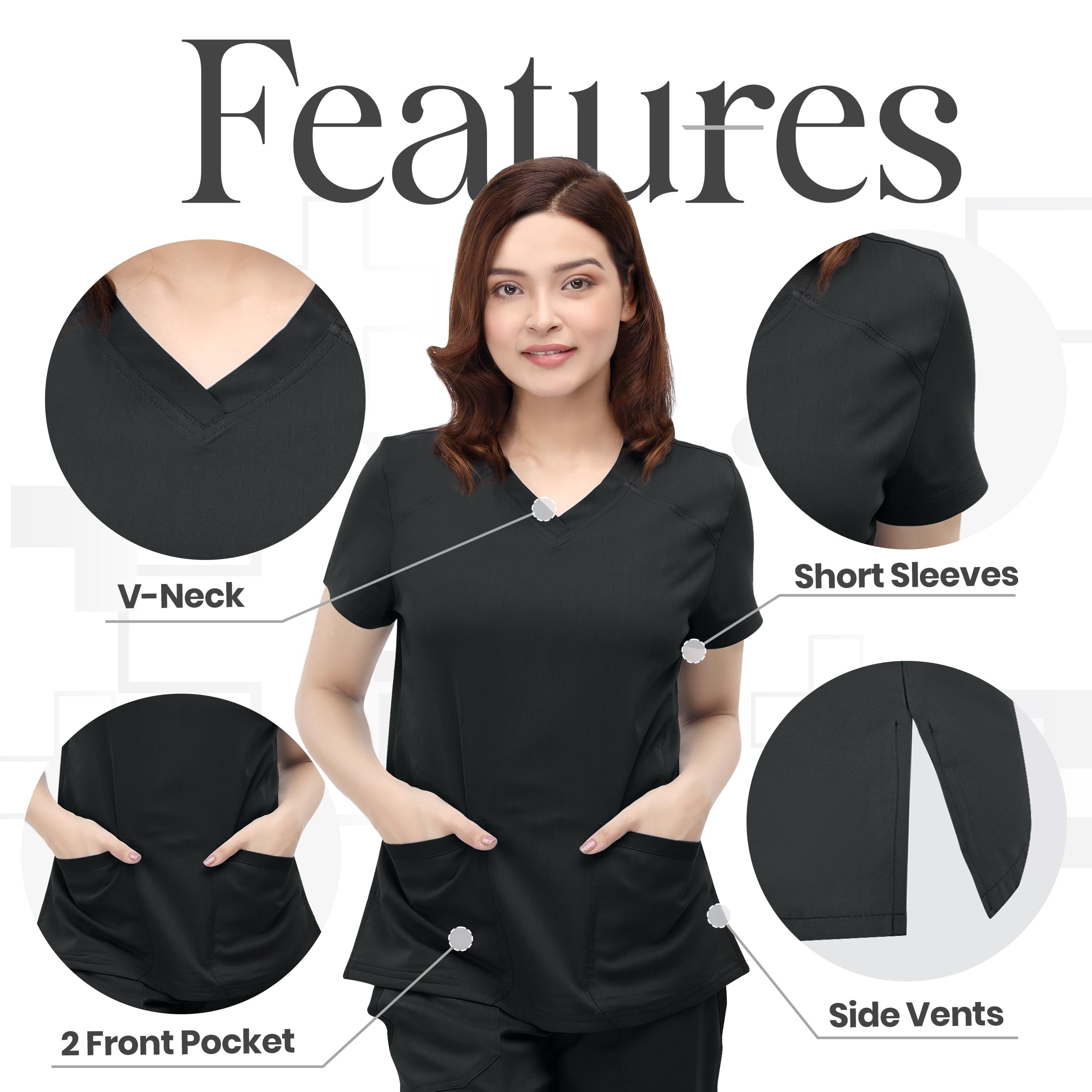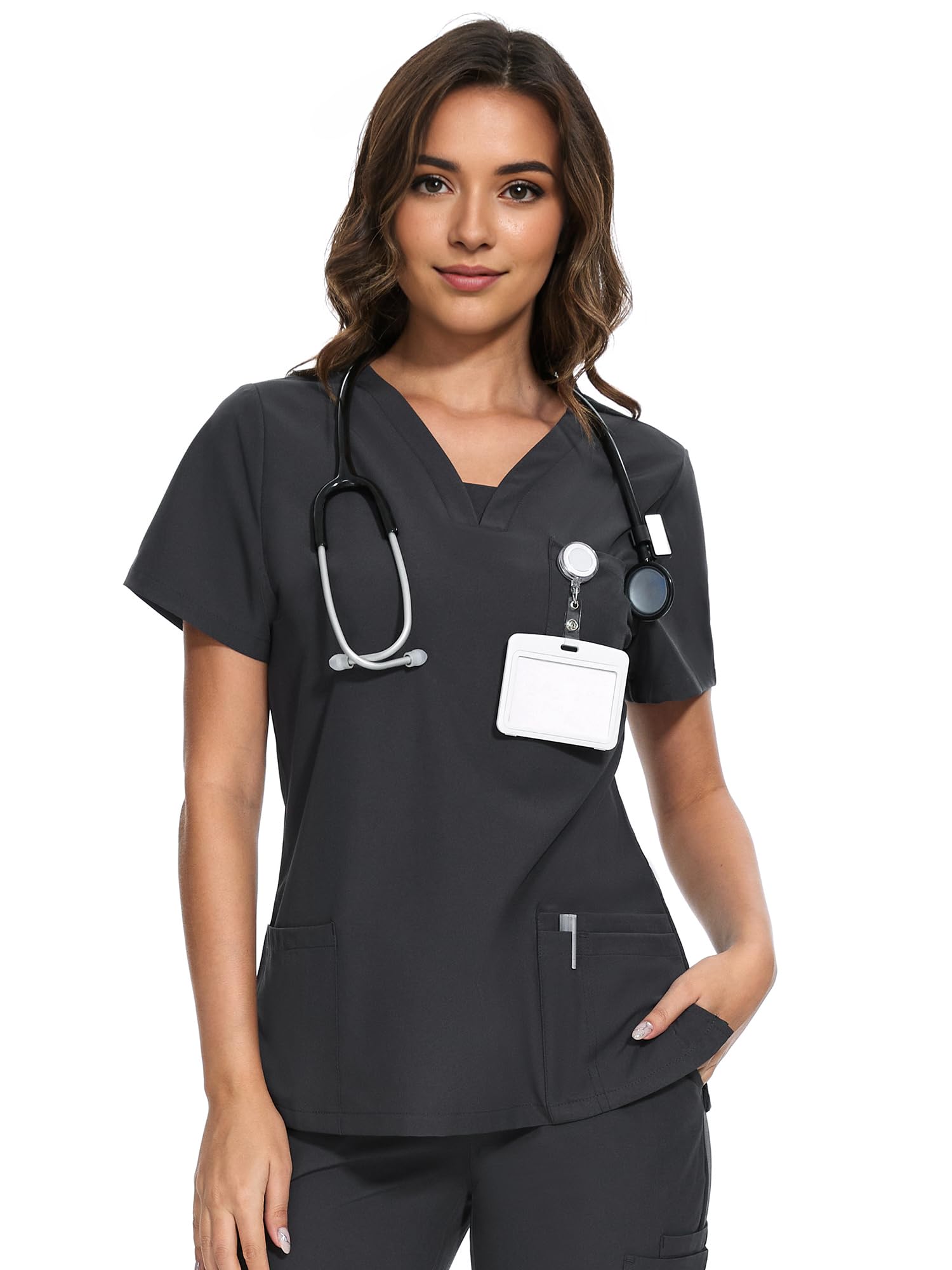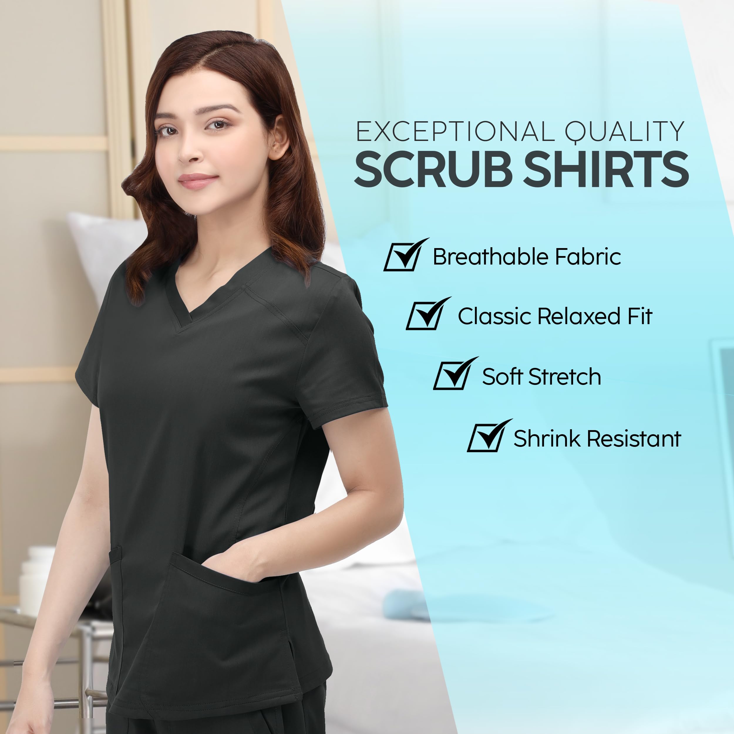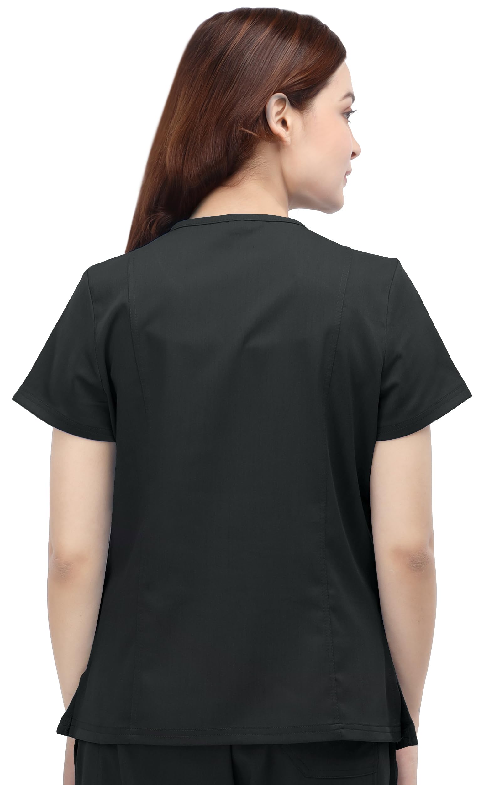 Durable Premium Fabric: Resilient fabric chosen for durability and comfort, providing a soft feel throughout the workday, making our women scrub tops durable and comfortable for long shifts.