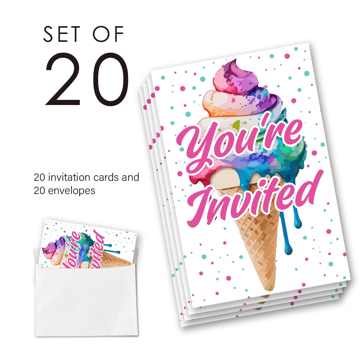 Exquisite Set: Set of 20 Each includes 20 party invitation cards and 20 matching envelopes.
