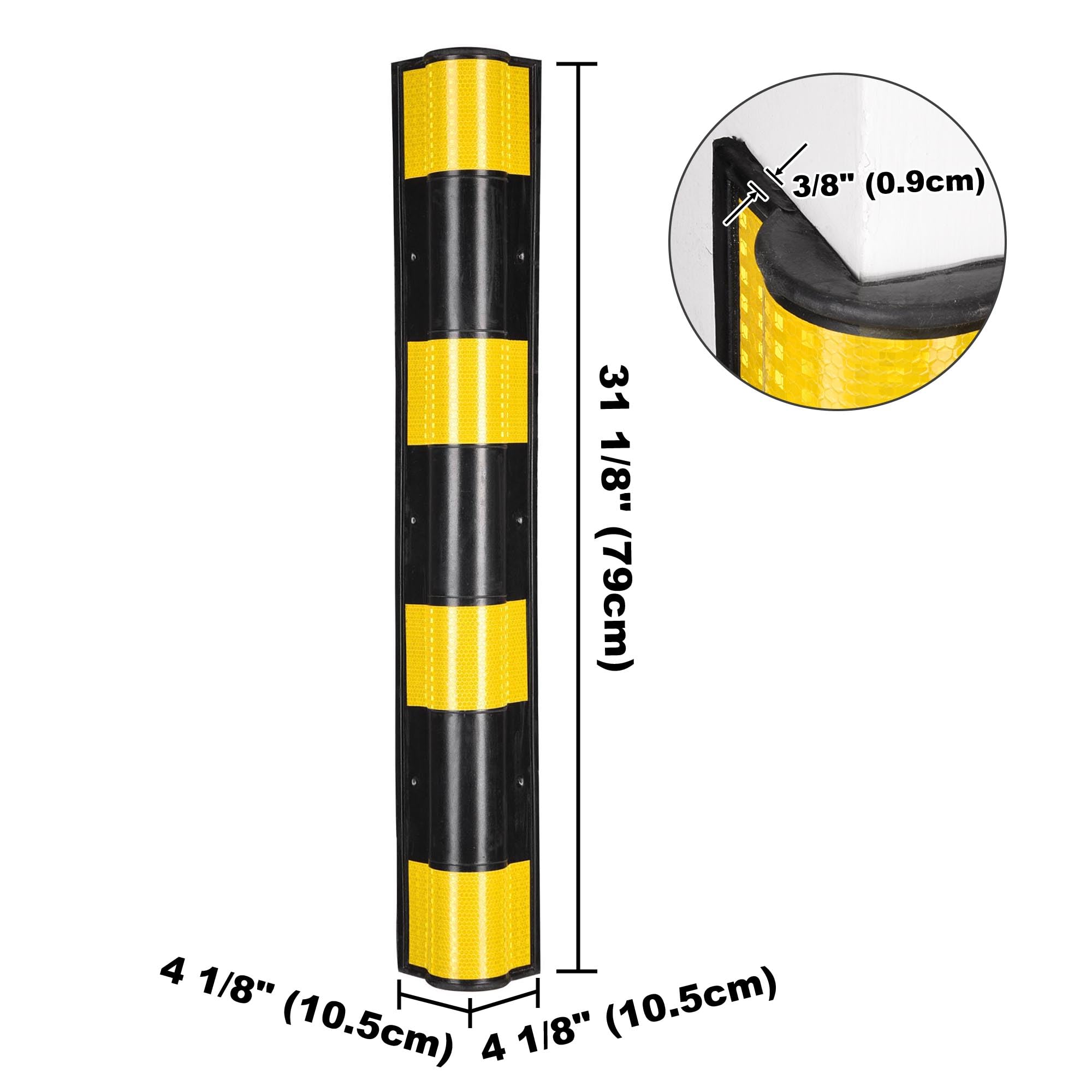Features: - High Visibility - These 2pcs 31" Reflective Corner Guards come in a round shaped design with reflective yellow safety strips to ensure improved visibility especially at night, guiding your driving and parking while providing warnings of potential danger in both daytime and low light conditions - Durable & Corrosion Resistance - Made of sturdy and highly-elastic rubber which provides great resistance to water and corrosion, ideal for being applied to both indoor and outdoor environments - Protective - Designed for protecting your car's body, doors, bumpers and paint from accidental damage due to low speed grazing when parking or slow-driving - Easy Installation - Simple installation procedure by using tapping screws and plastic anchors for permanent installation on walls, without the need of external manpower (tapping screws and plastic anchors are not included) - Wide Application - Designed and made to fit various indoor and outdoor settings such as garages, parking lots, warehouses, offices, etc. Specifications: - Overall Dimension(LxWxH): 31 1/8" x 4 9/16" x 3 1/8" (79 x 11.6 x 8 cm) - Edge Type: Round Shape - Material: Rubber - Net Weight: 7.7 Lbs (3.5 kg) Package Contents: - 2x Corner Guards - 1x Manual Notice: - We recommended using 1/8" x 11 13/16" (3.5 x 30 mm) tapping screws & plastic anchors to install it. - Tapping screws & plastic anchors are not included, please purchase separately.