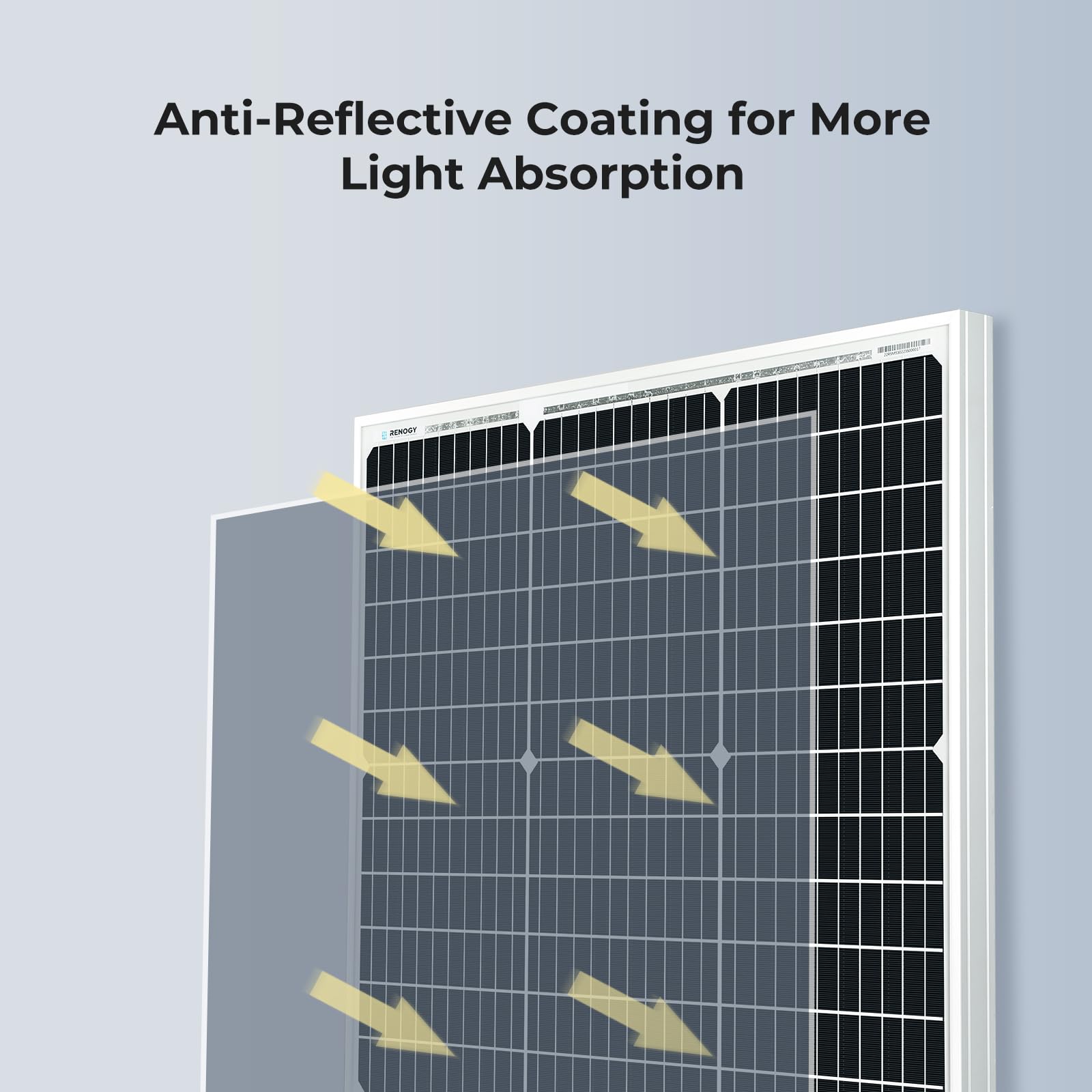 Corrosion-resistant aluminum frame for extended outdoor use, allowing the panels to last for decades. Anti-reflective, high transparency, low iron tempered glass with enhanced stiffness and impact resistance.