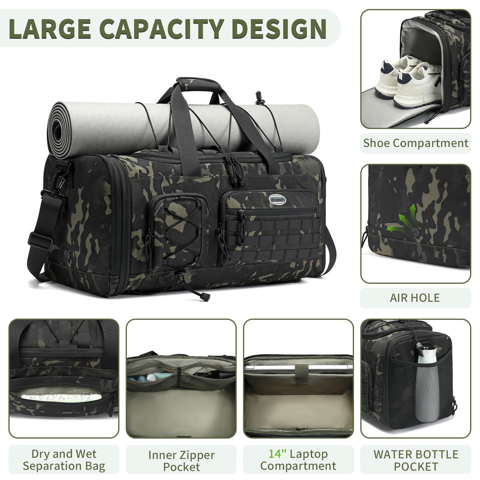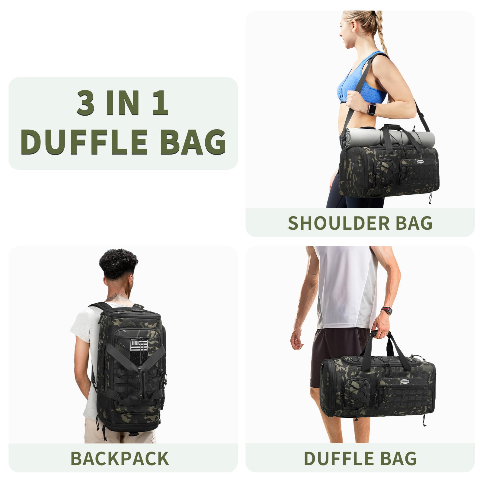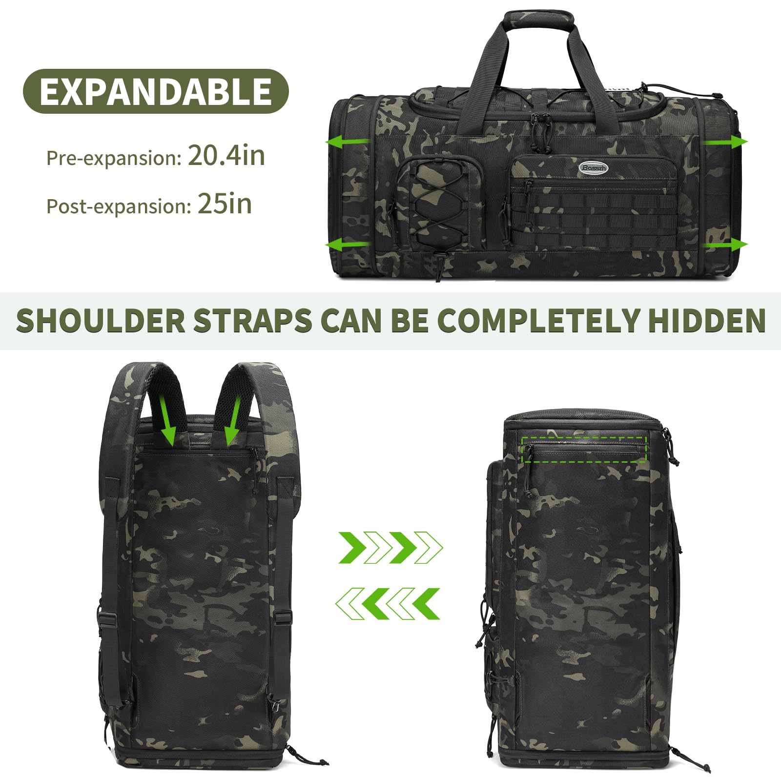 Versatile: This expandable gym bag with shoe compartment that can be used as a sport bag, gym backpack, or carry-on travel duffle bag for men and women.