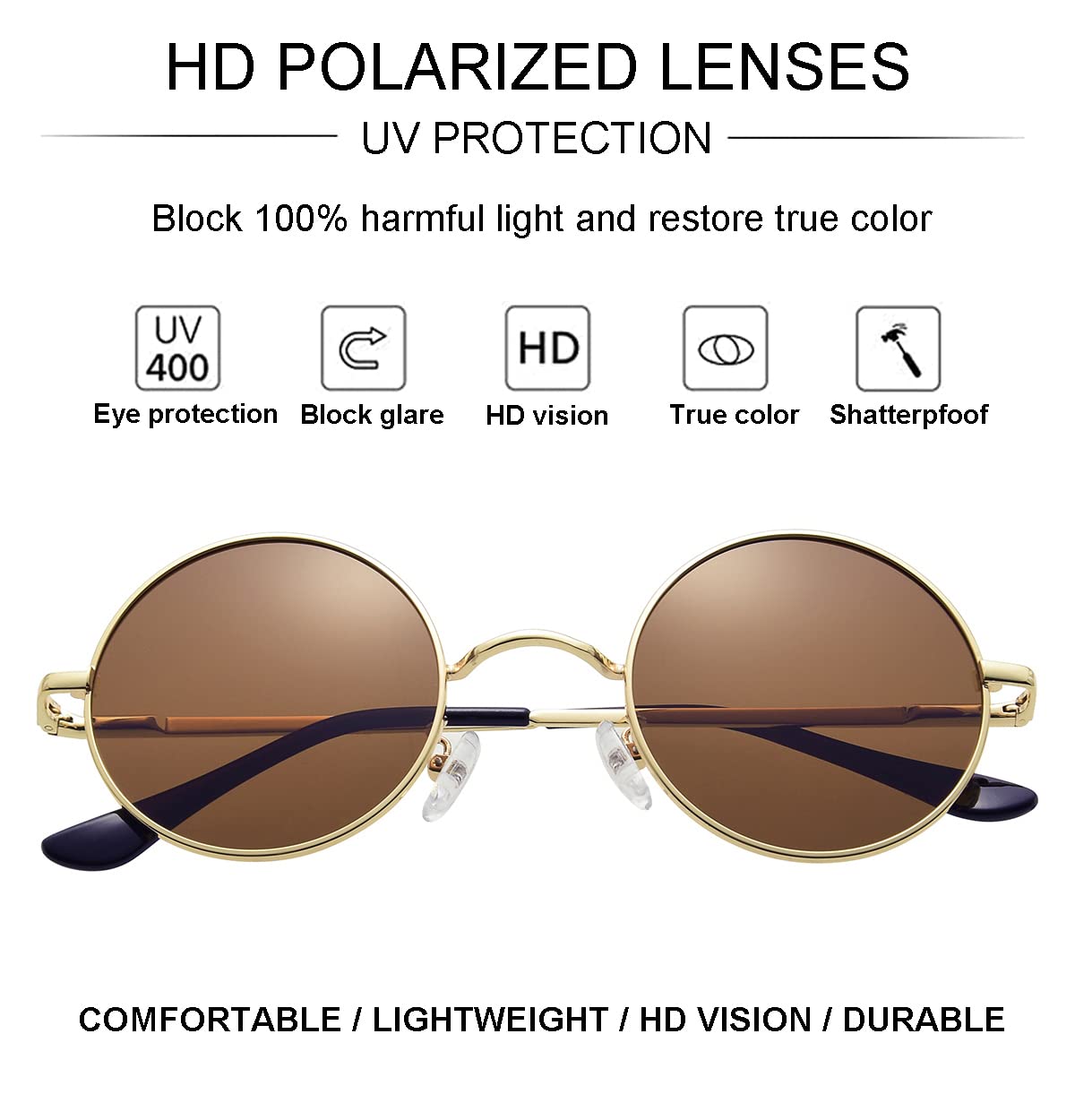 ★ PREMIUM MATERIAL - Scratch-resistant polycarbonate lens with anti-glare coating, delicate lightweight metal frame, soft and anti-skid nose pads, flexible spring hinges, these sun glasses are very sturdy and comfortable.