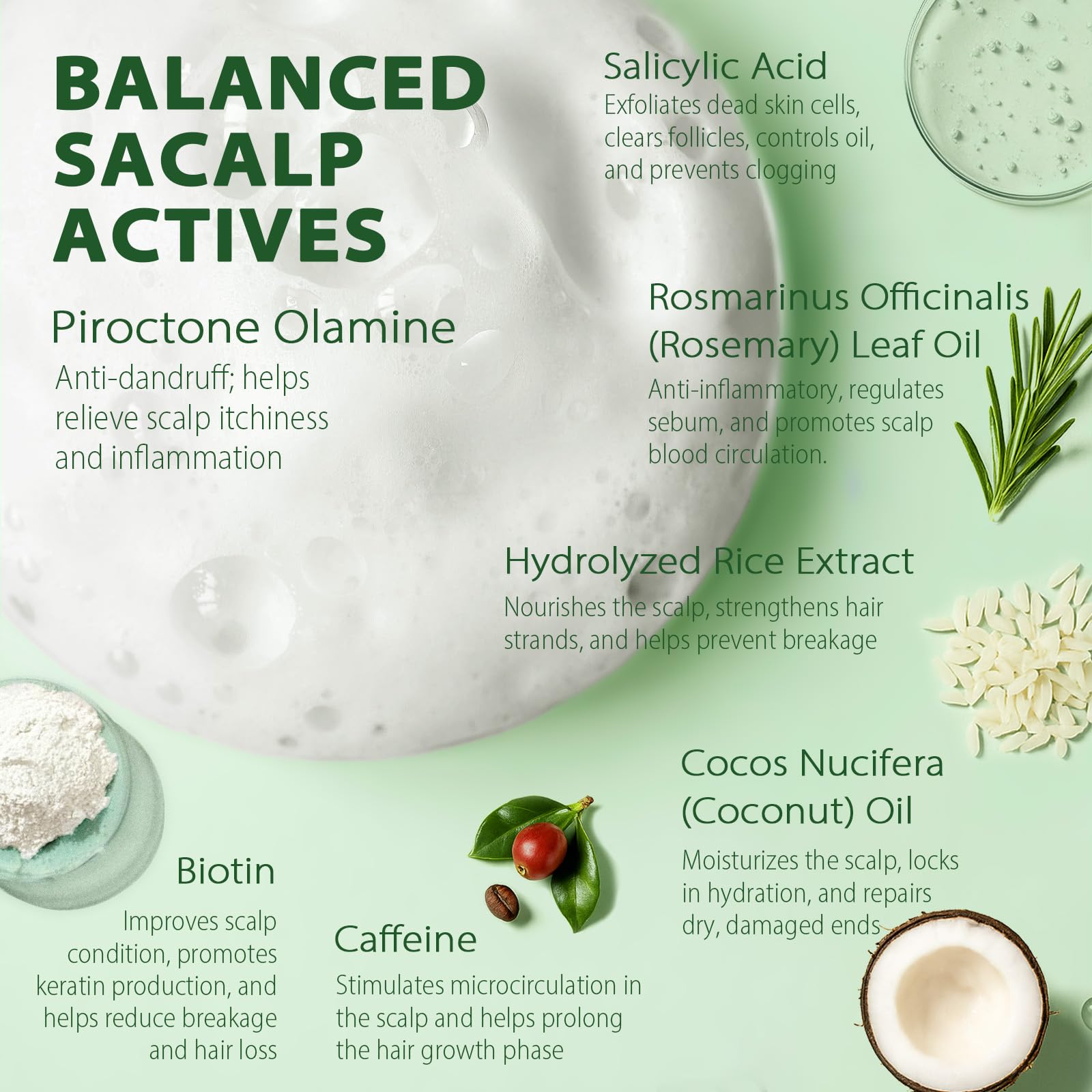 Soothing & Moisturizing Care: Enriched with Rosemary Extract and Coconut Oil, this shampoo helps soothe scalp discomfort, nourish dryness, and restore moisture balance, leaving your scalp feeling refreshed and calm after each wash.