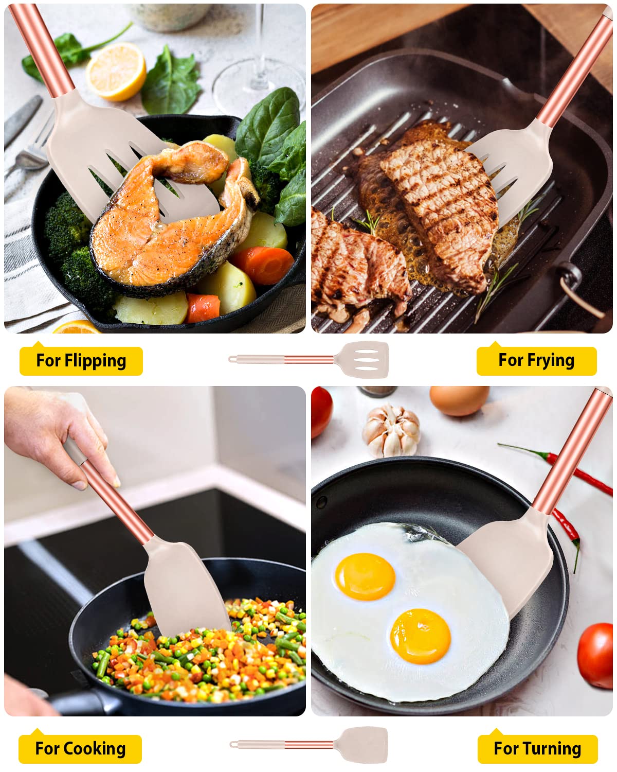 Just Want to Provide the Ideas for You:The modern colors can be freely matched with different kitchen styles;Whether it is used for baking, frying, turning or serving food, our multi-functional spatula set will add more fun to your kitchen