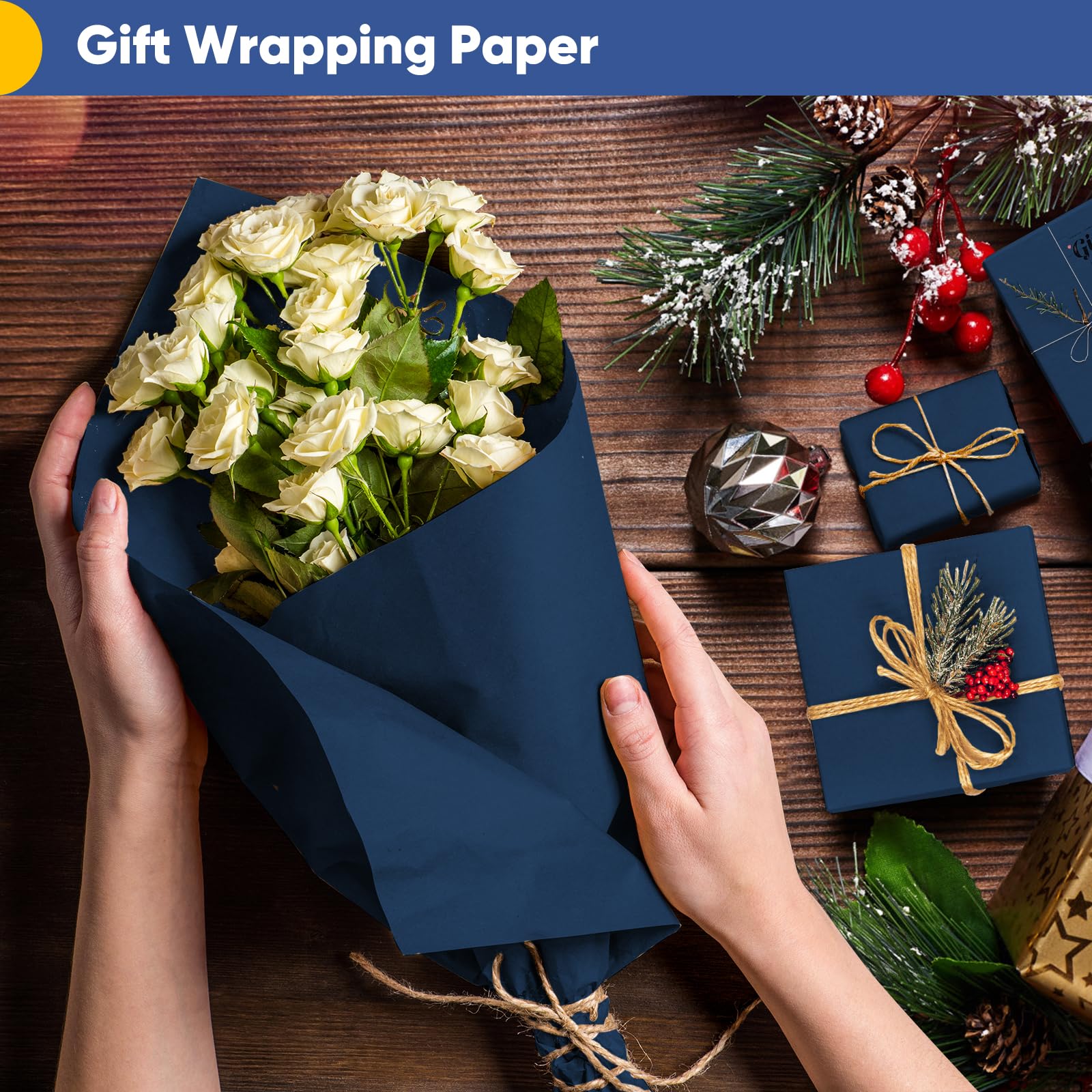 Vanhench Navy Blue Wrapping Paper Roll 30"×1200", Art Craft Paper, Color Paper Bouquet Flower Paper, Perfect for Birthday, Valentine's Day, Mother's Day, Holiday, Wedding
