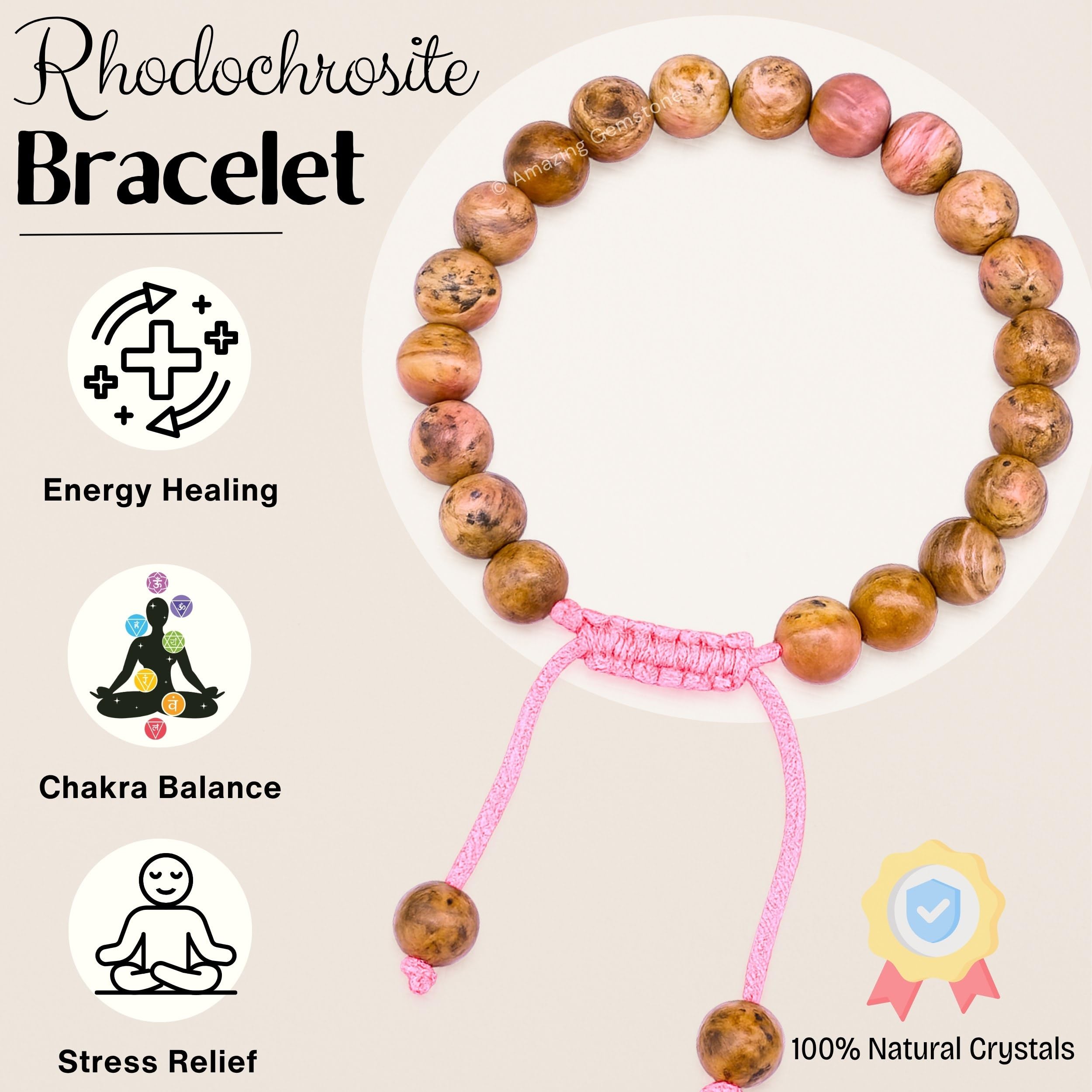 Natural : These Rhodochrosite Bracelets are handmade with high quality authentic natural gem stone beads.