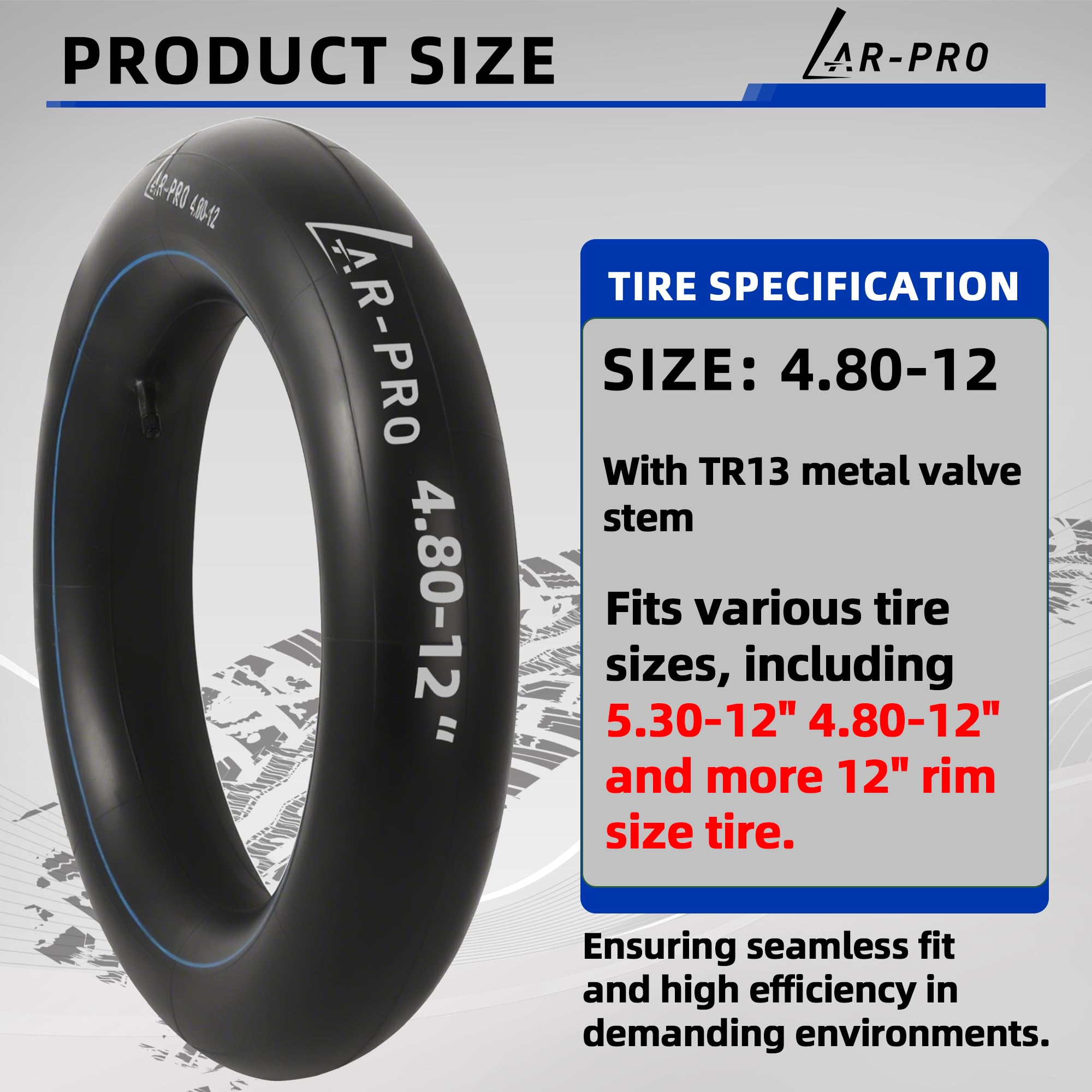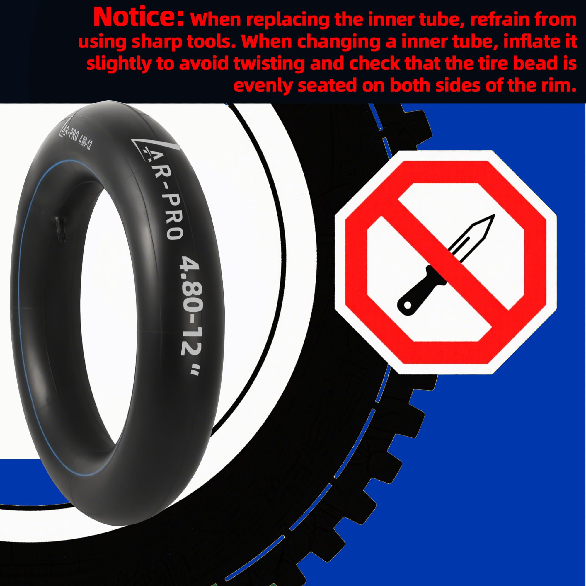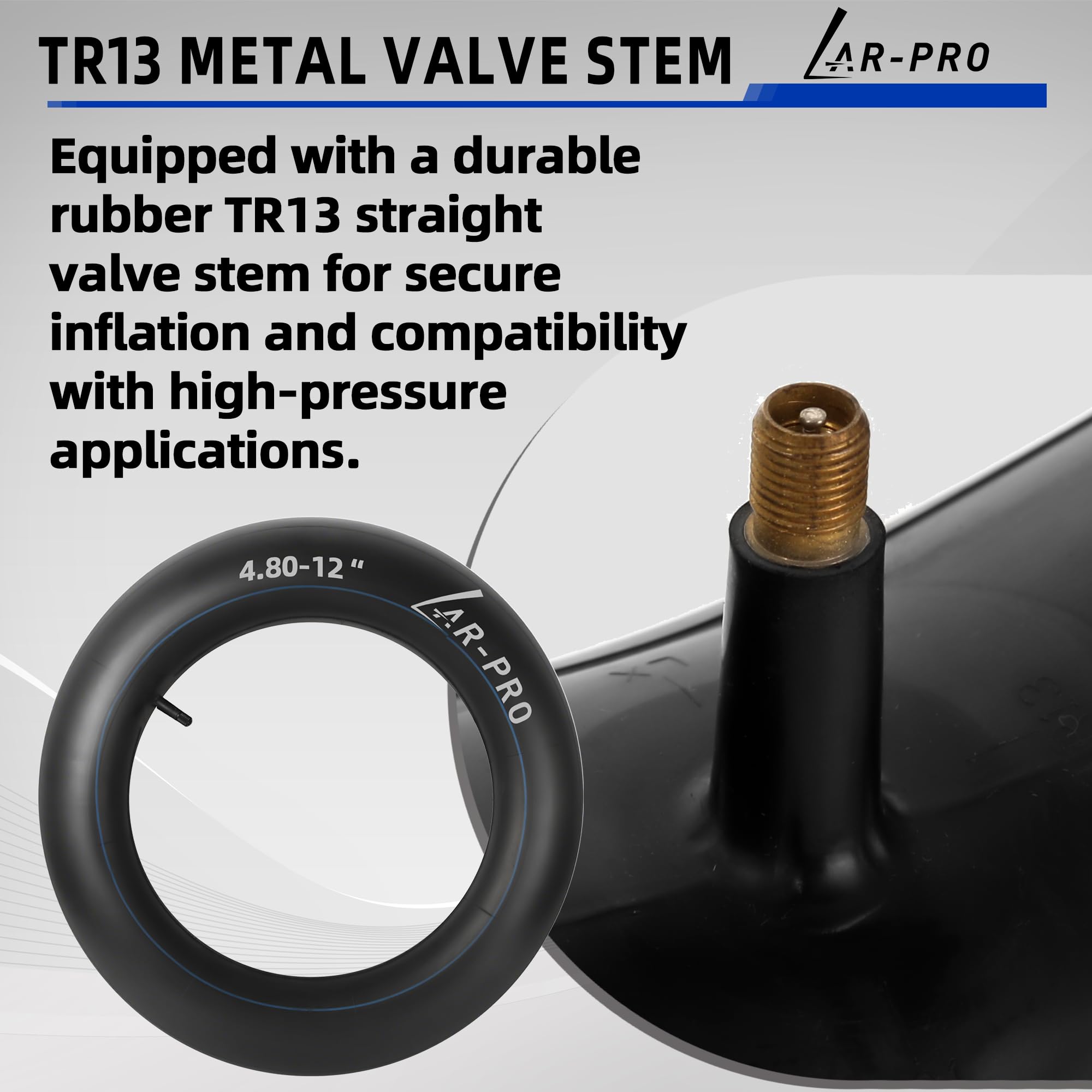 Heavy-Duty Inner Tube: Durable 4.80-12 butyl rubber inner tube with TR13 valve stem, designed for lawn and garden tractors, trailers, wagons, mower, truck, rototiller and most utility equipment tires. Ensuring seamless fit and high efficiency in demanding environments