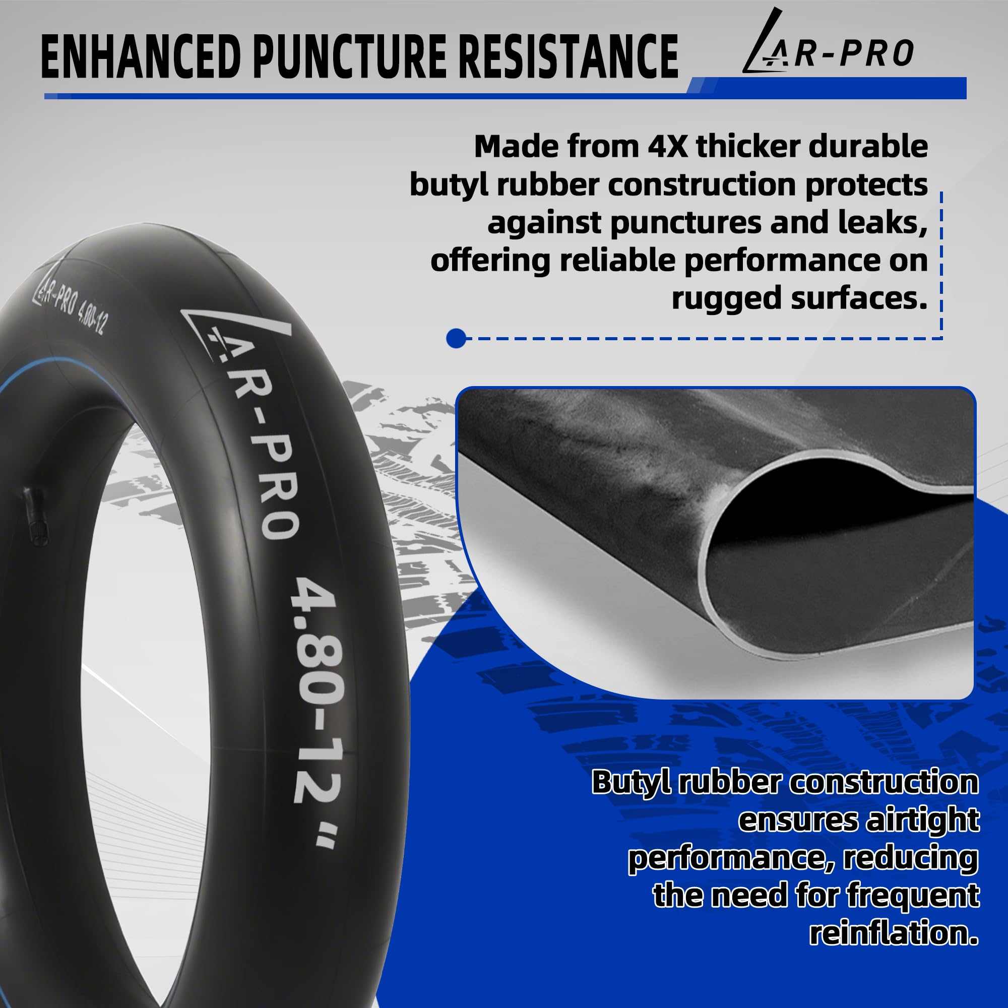 Enhanced Puncture Resistance: Made from 4X thicker durable butyl rubber construction protects against punctures and leaks, offering reliable performance on rugged surfaces. Butyl rubber construction ensures airtight performance, reducing the need for frequent reinflation.