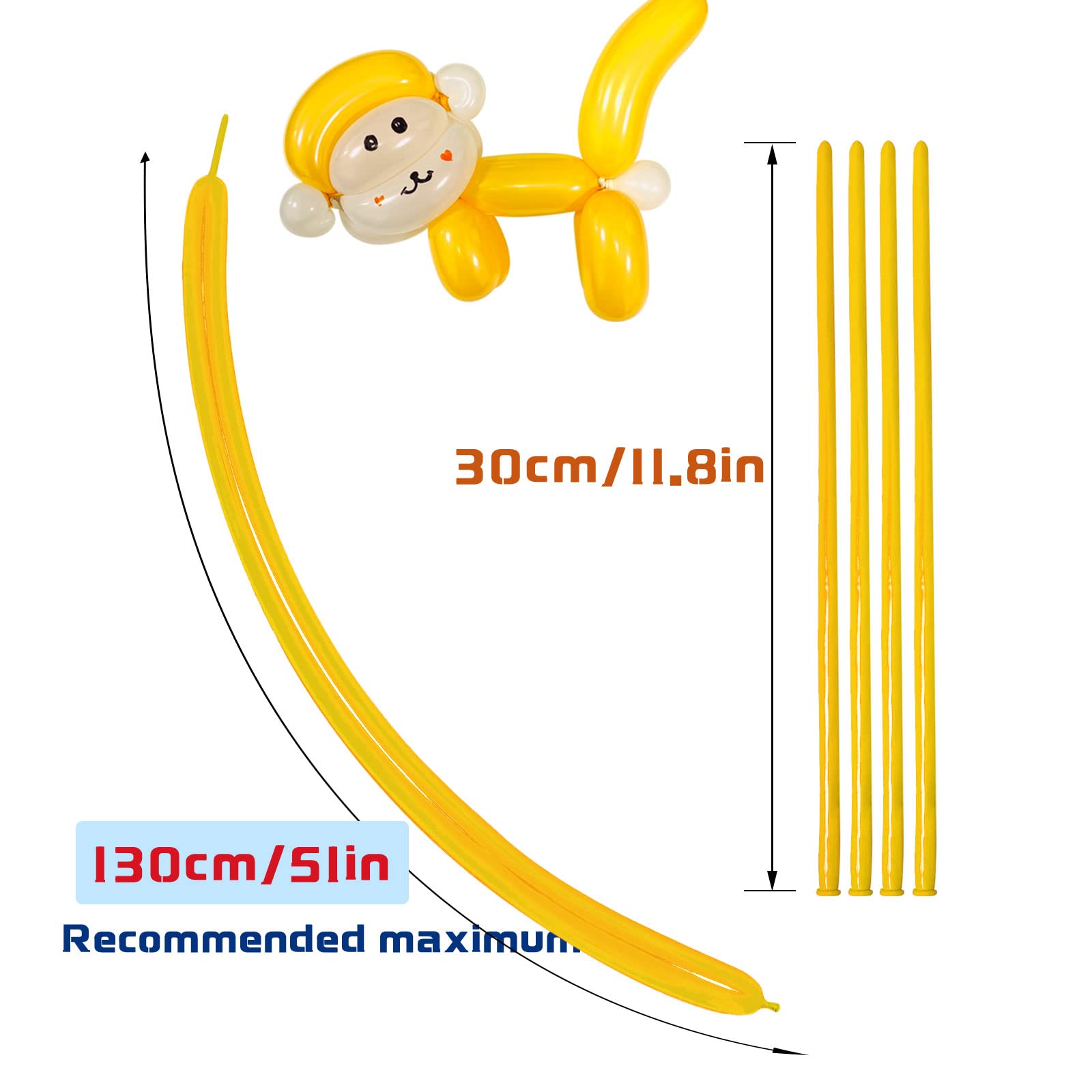 BALLOON ANIMAL BALLOONS: The length of the twisty balloon is 12.5 inches, and it can be inflated to 47-53 inches. It can be easily inflated with balloon pump or an electric pump.