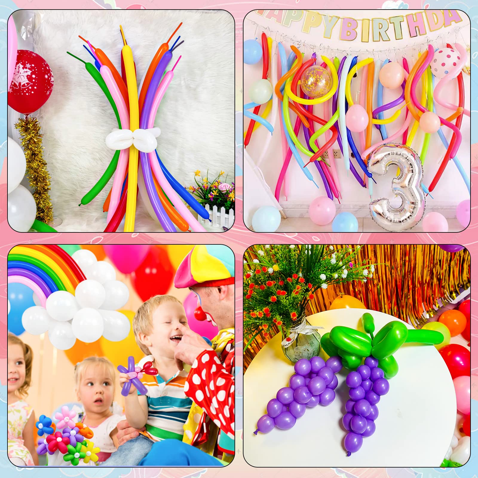 WIDE RANGE OF USES: Twisted balloons are suitable for various occasions, such as parties, birthdays, family activities, school activities, magic shows, Thanksgiving and Christmas. It is an ideal choice for professional balloon artists, clowns, and magicians. It can also be used as a fun toy and game to develop intellectual and hands-on skills.