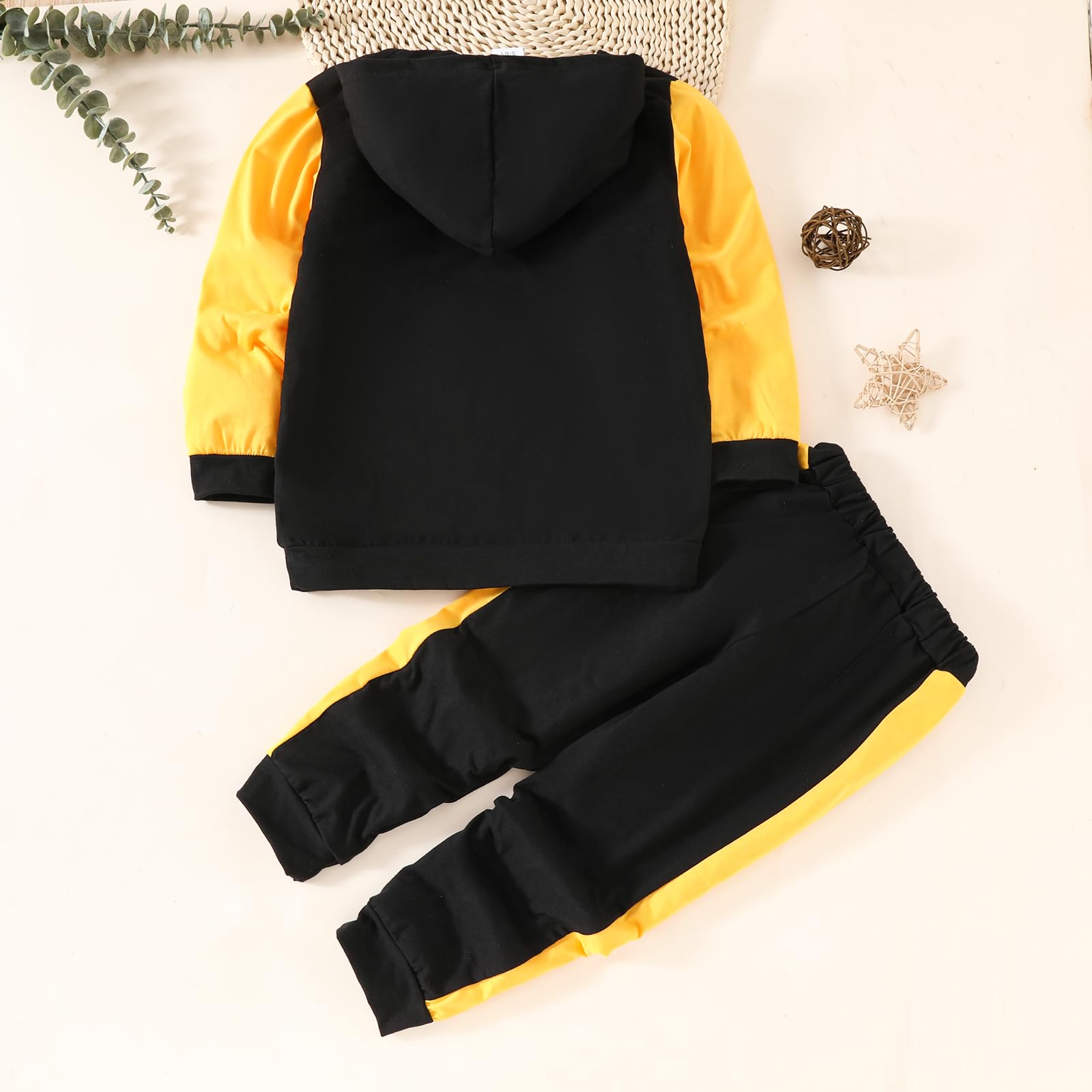 Description Kid Boys Clothes Long Sleeve Color Blocked Hoodie Top Pants 2PCS Sweatsuit Fall Boys Outfits