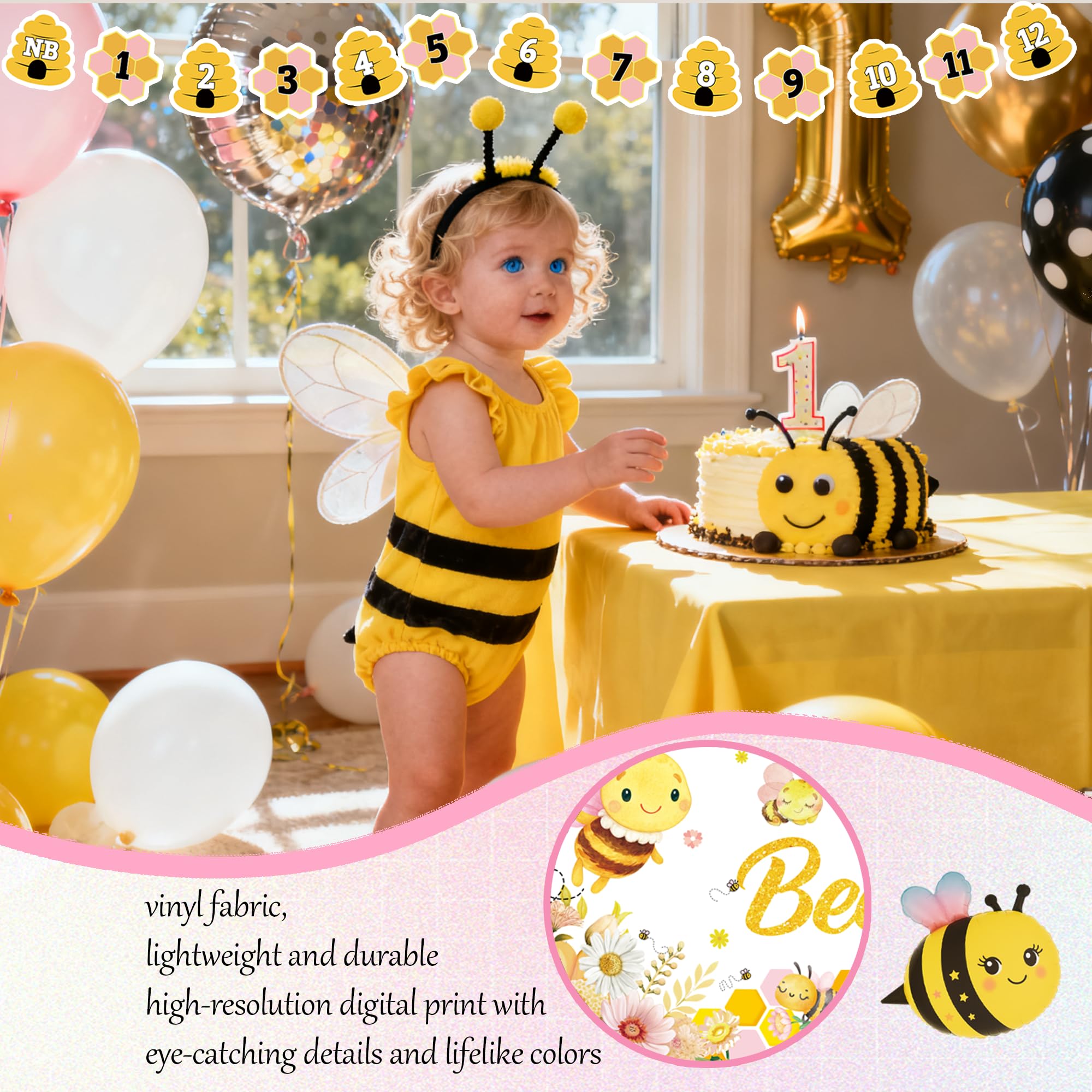 BEE 1ST BIRTHDAY DECORATIONS FOR GIRLS – Make her first bee day extra sweet with this buzzing honey bee party set! Designed with playful bumble bees, honeycomb patterns, and soft pastel accents, this kit adds a charming touch to your little one’s bee birthday celebration. It comes with balloons, monthly photo banners, cake toppers, and more—everything you need for easy decorating and picture-perfect moments. Whether you call it a honey bee party or her special bee-day, these decorations are sure to create memories as sweet as honey.