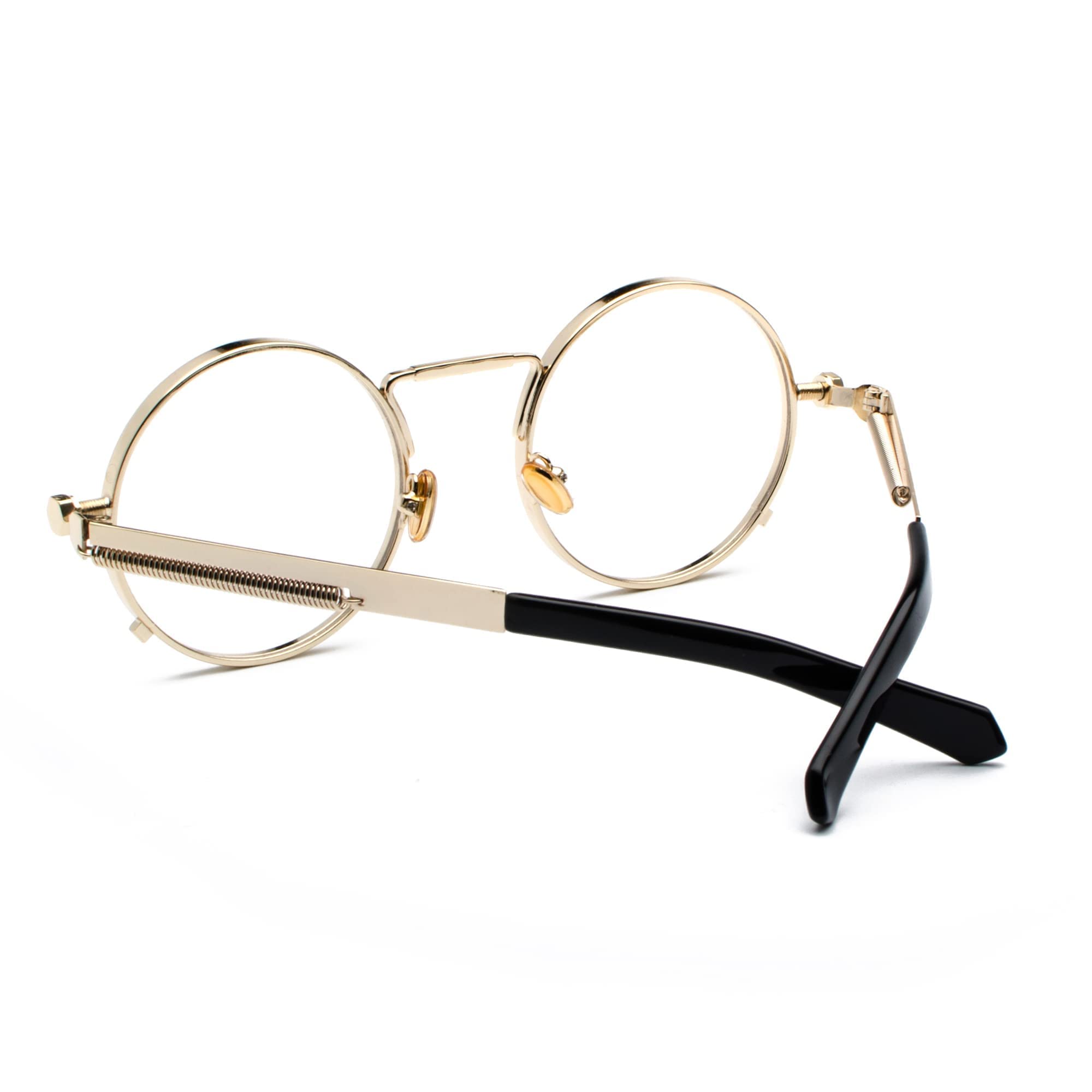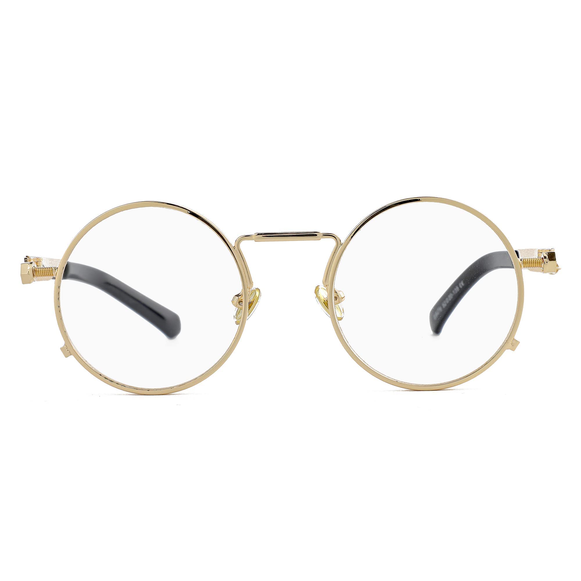 ☀CIRCLE FULL METAL FRAME DESIGN: The round sunglass uses a full stainless steel metal frame, reinforced metal hinges, soft nose pad materials, spring temples, and the overall classic steampunk design makes you more natural and beautiful when you wear it.