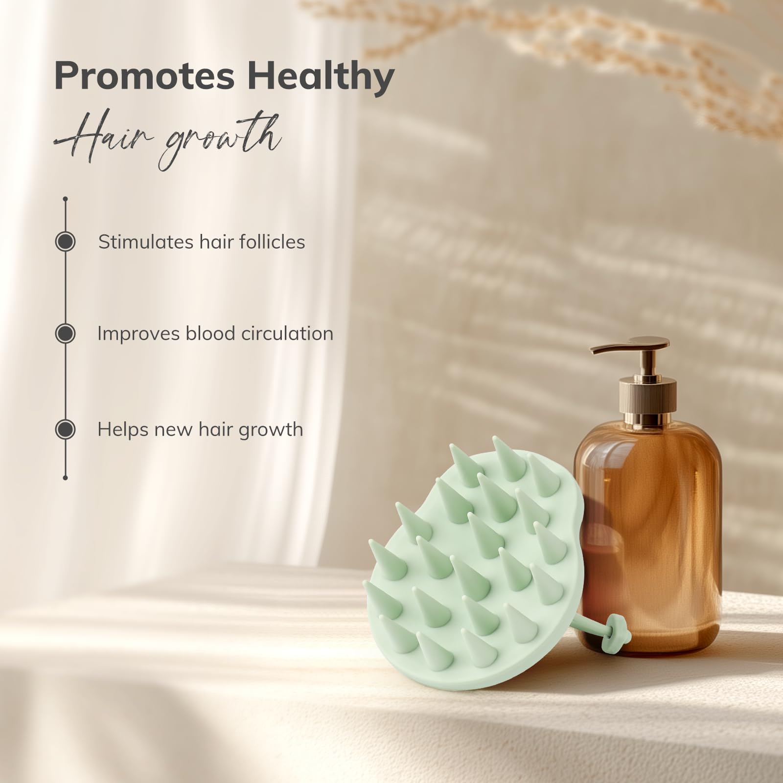 Enhance Blood Circulation & Hair growth: Our scalp massager with soft silicone bristles provides a gentle and effective scalp massage, increasing blood circulation to the scalp and helping to relieve stress. It is perfect for daily scalp care to help soothe the scalp, reduce hair loss and promote hair growth