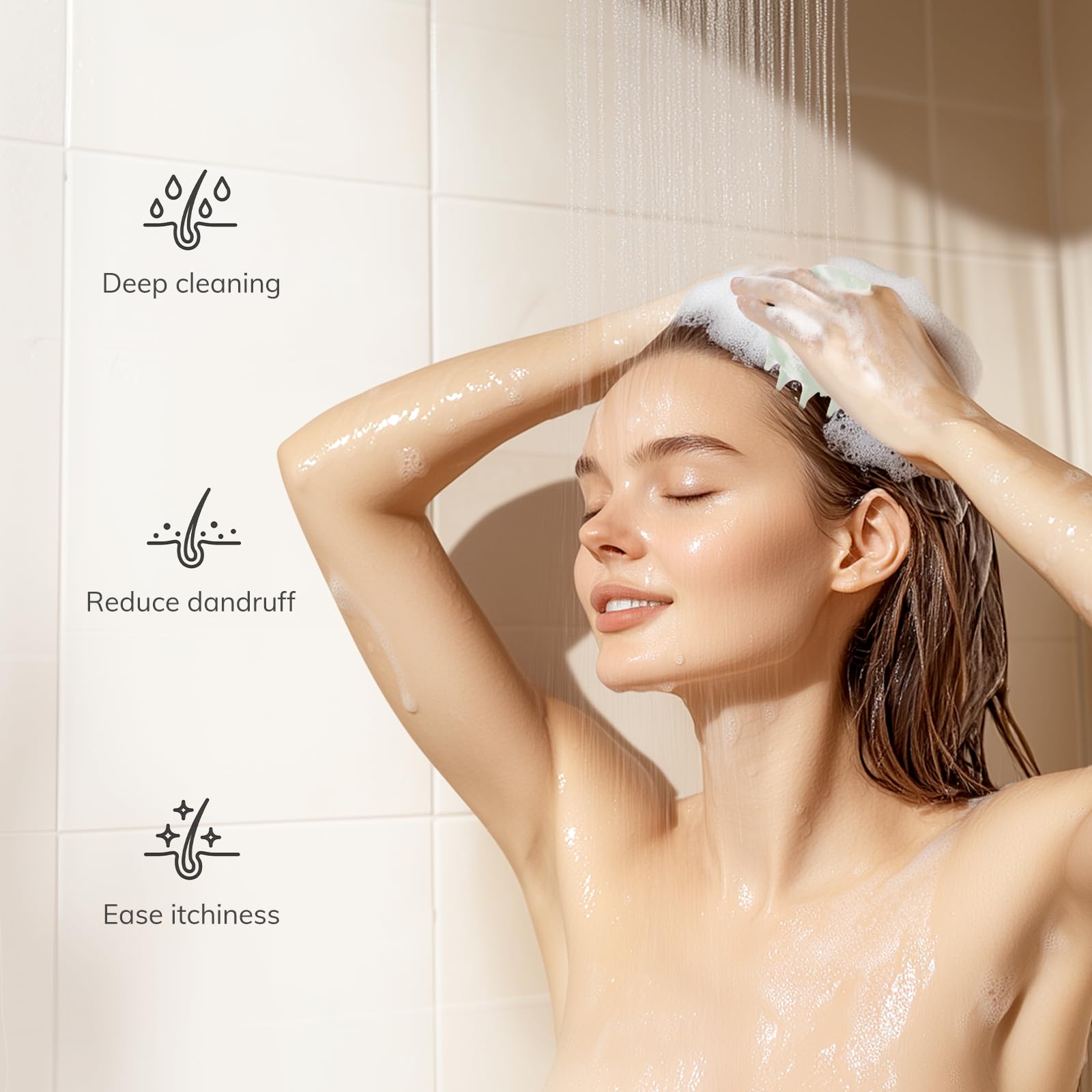 Long Bristles for Deep Cleaning: The scalp scrubber has one-inch long silicone bristles that easily penetrate thick hair and distribute shampoo evenly. It is easier to create a rich lather than using your hands, and can help you gently remove dandruff and buildup from your scalp