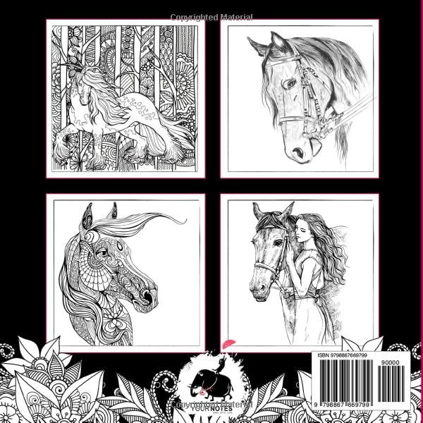 A Wonderful Horses Coloring Book, for all Horse Lovers. Especially for Girls & Teenagers Aged 8 and Up. 50 Beautiful and Challenging Horse Designs Ensure That You Can Develop Your Creativity. Relax in the Process. You Will Be Thrilled! Each Design Is Printed on a Separate Page. The Back Is Dark Textured, Meaning That the Color Cannot Bleed Through Onto the Following Designs. The Pictures Can Also Be Detached from the Book and Given as Gifts, for Example. Look Forward to This: 50 Unique and Beautiful Horse Designs Practical Format for Easy Coloring and Perfect to Take With You Promotes Fine Motor Skills and the Ability to Concentrate For Relaxation and Mindfulness Each Design on a Separate Page - No Bleed-Through! Click on "Add to Cart" and Get This Beautiful Coloring Book Today!