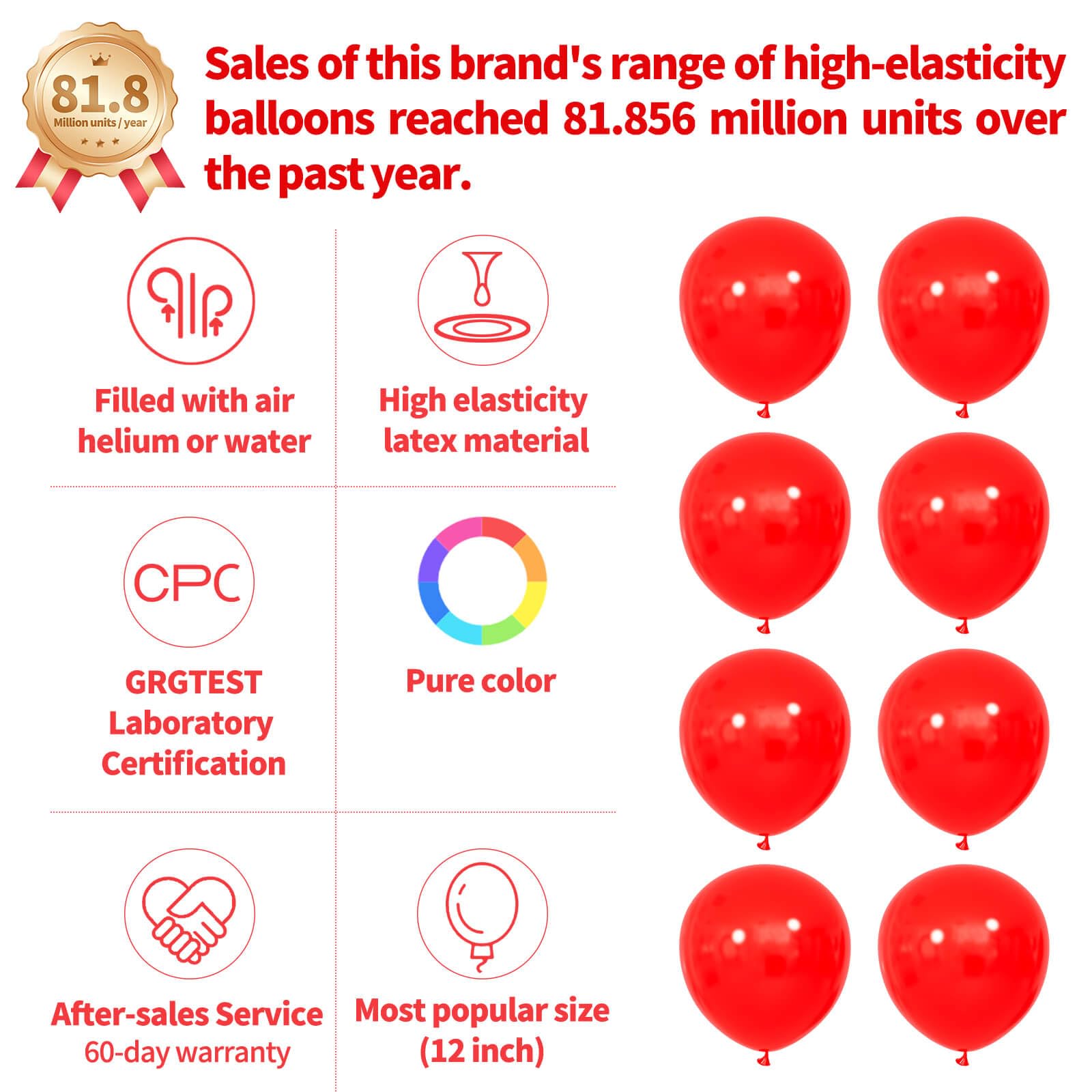 The 12 inch Red Latex Party Balloons included in the package can make your Party Decoration such as Birthday Party, Baby Shower,Wedding, Halloween or Christmas Party, etc. have enough Red Balloons to decorate.