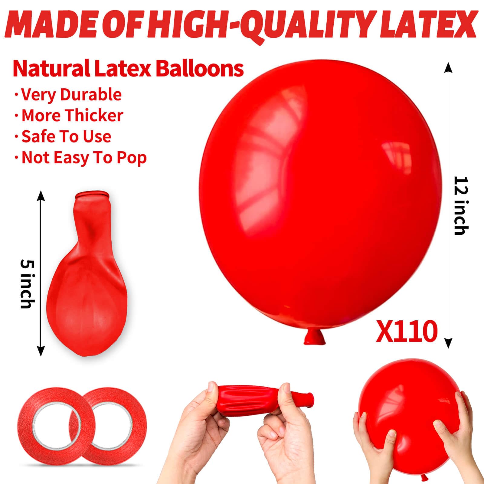 Join us you will get our toys games party supplies red decorations Balloons - 110pcs 12 inch red baloons and 2 rolls of ribbons in random colors.