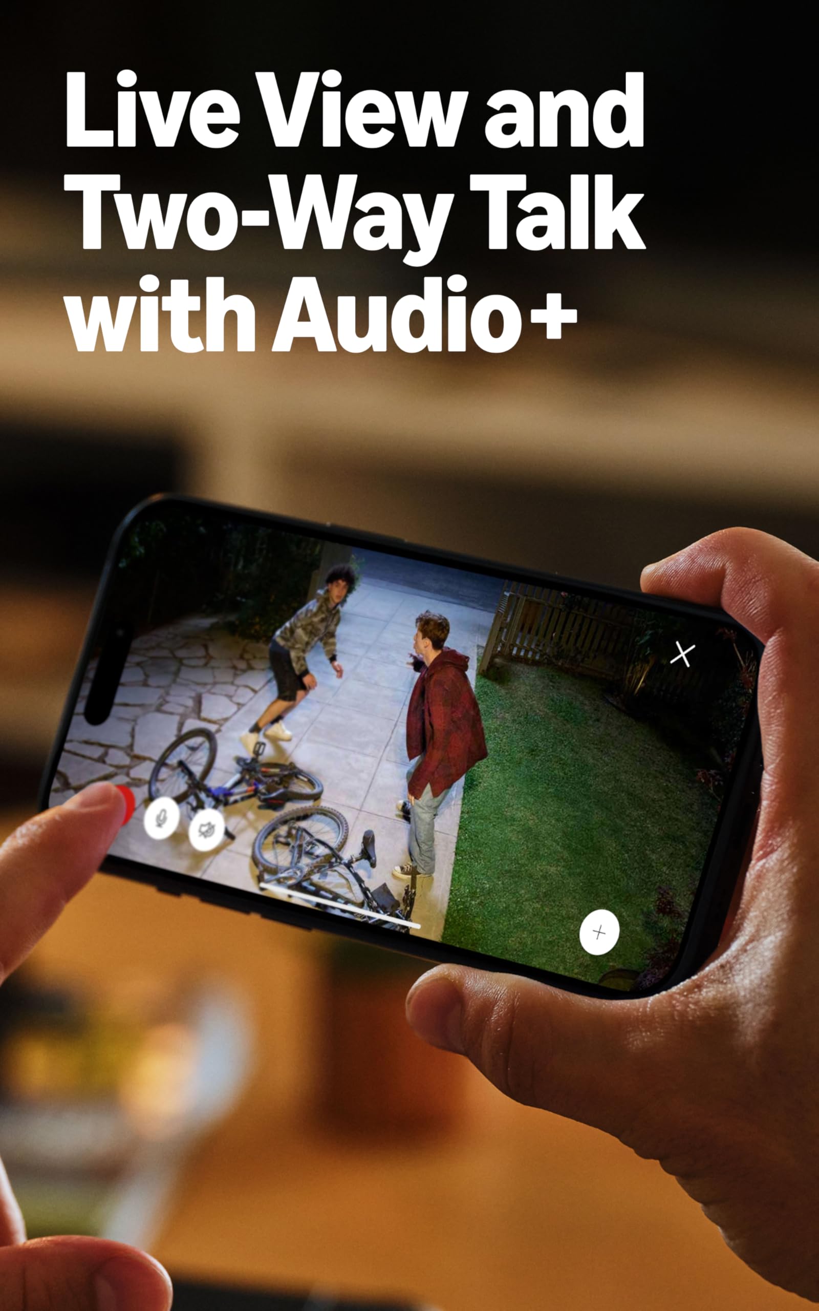 See, hear and speak to visitors on camera — With Live View & Two-Way Talk with Audio+, you’ll be able to interact with who’s there in real time, right from your phone.