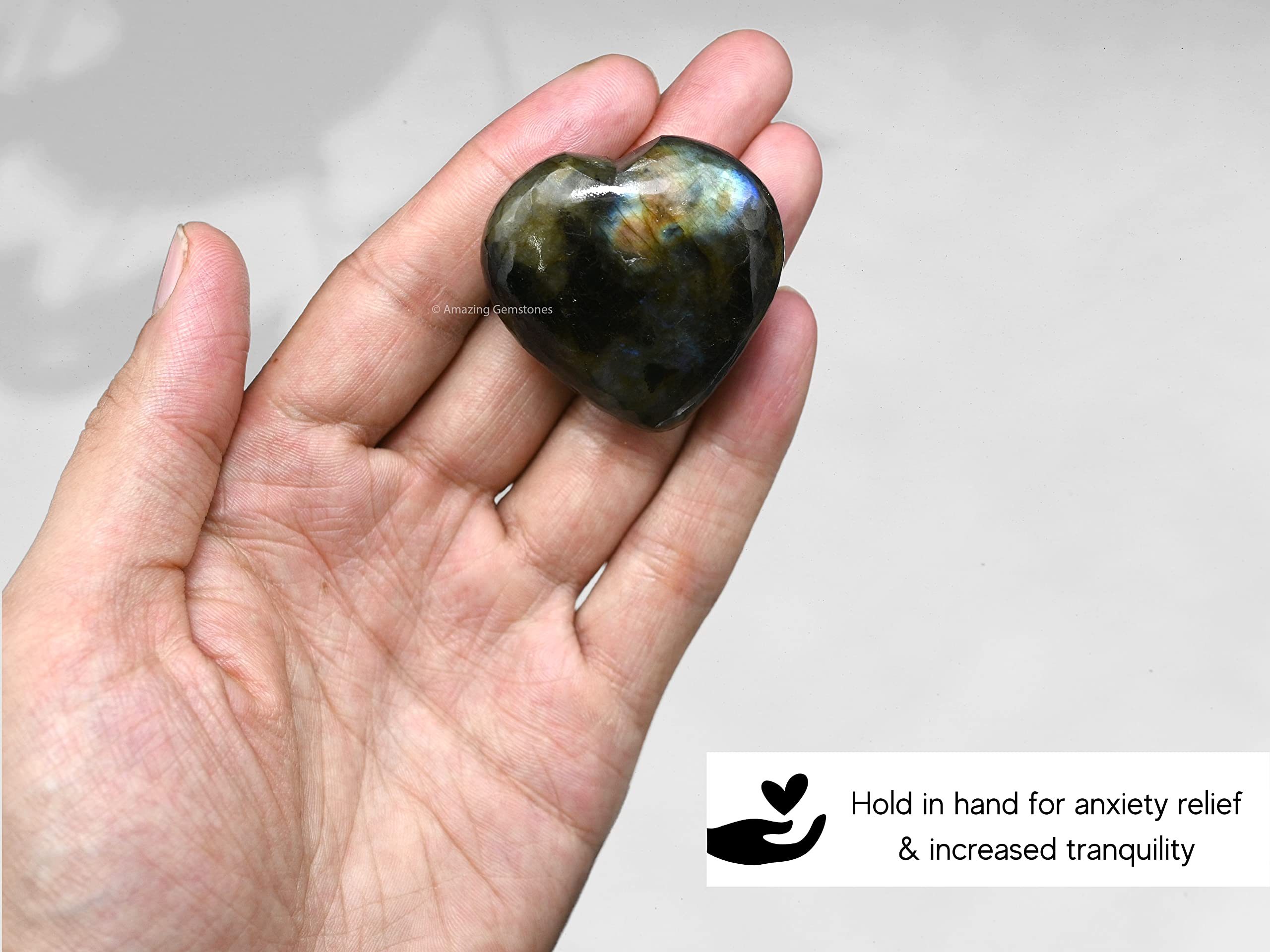 Labradorite Crystal Heart Palm Worry Stones are polished heart shaped stones that can be used for Back, Neck, Face and Feet Massage therapy, Chakra Balancing, Reiki Healing, Crystal Grid Meditation and many other esoteric healing practices.