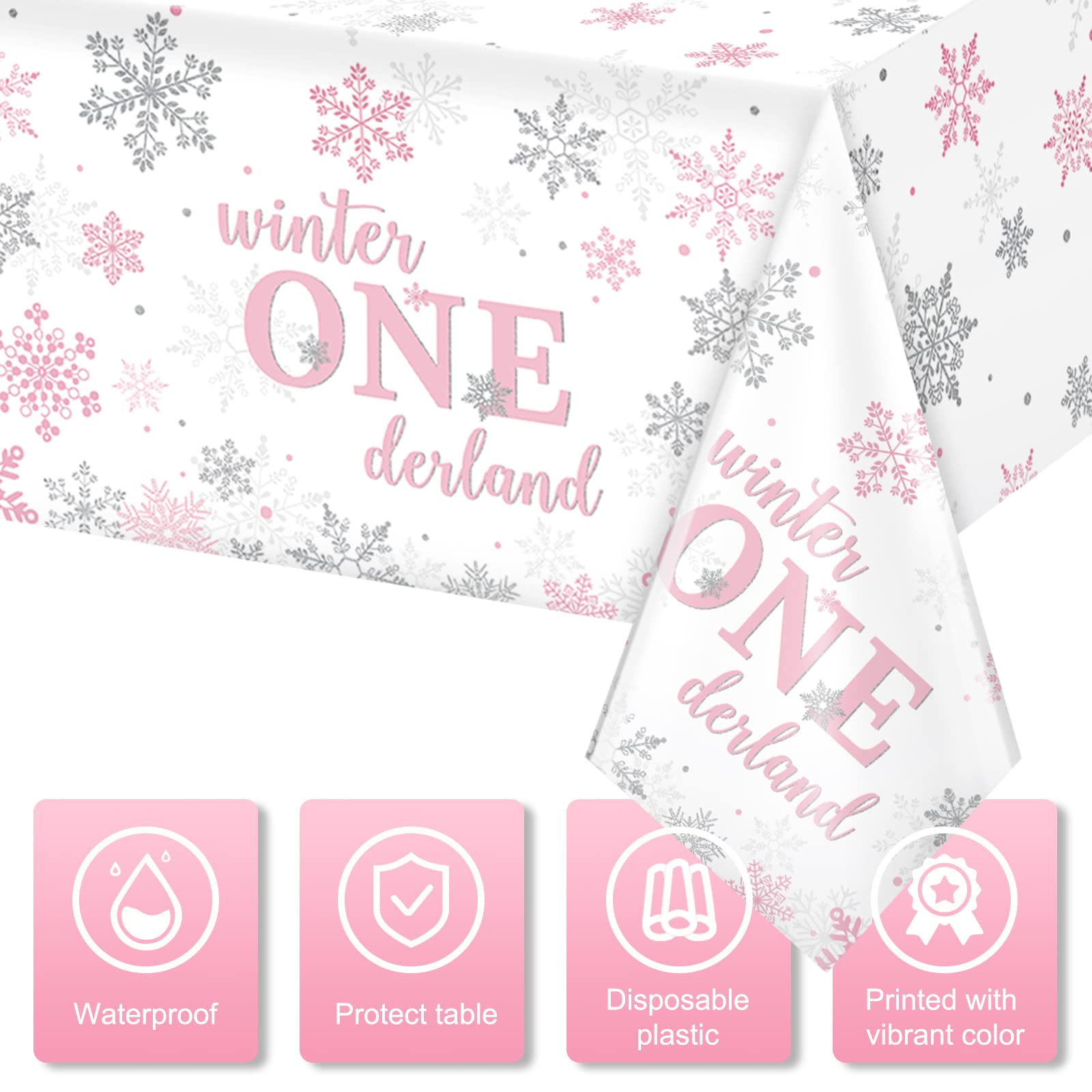 Easy to clean: these snowflake onederland plastic tablecloths are waterproof and stain resistant, keep your tables away from splashing juice, grease and dirt. You don't need to worry about how to clean up the mess, just toss them away after a party, save your time and make you enjoy the birthday party with your baby and families