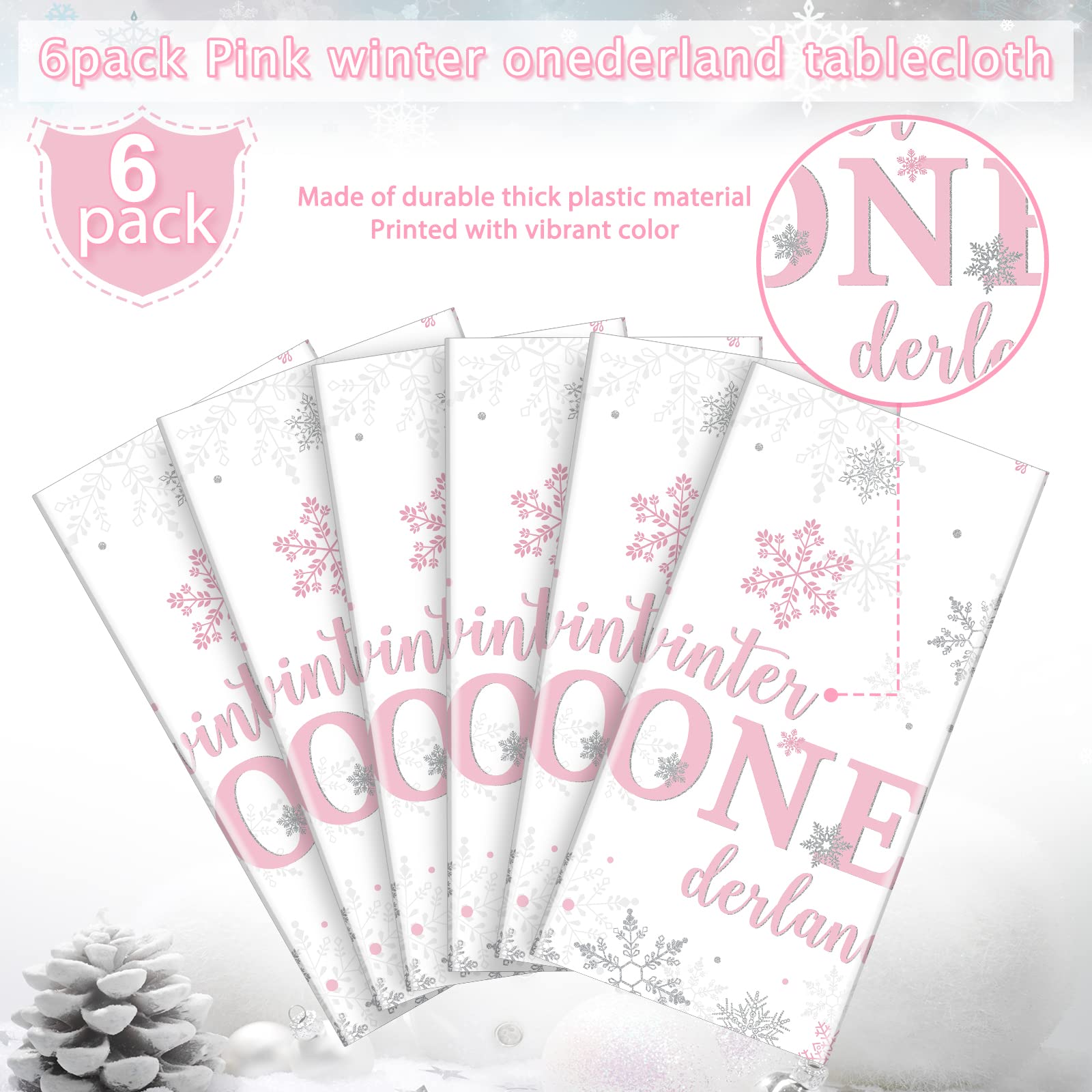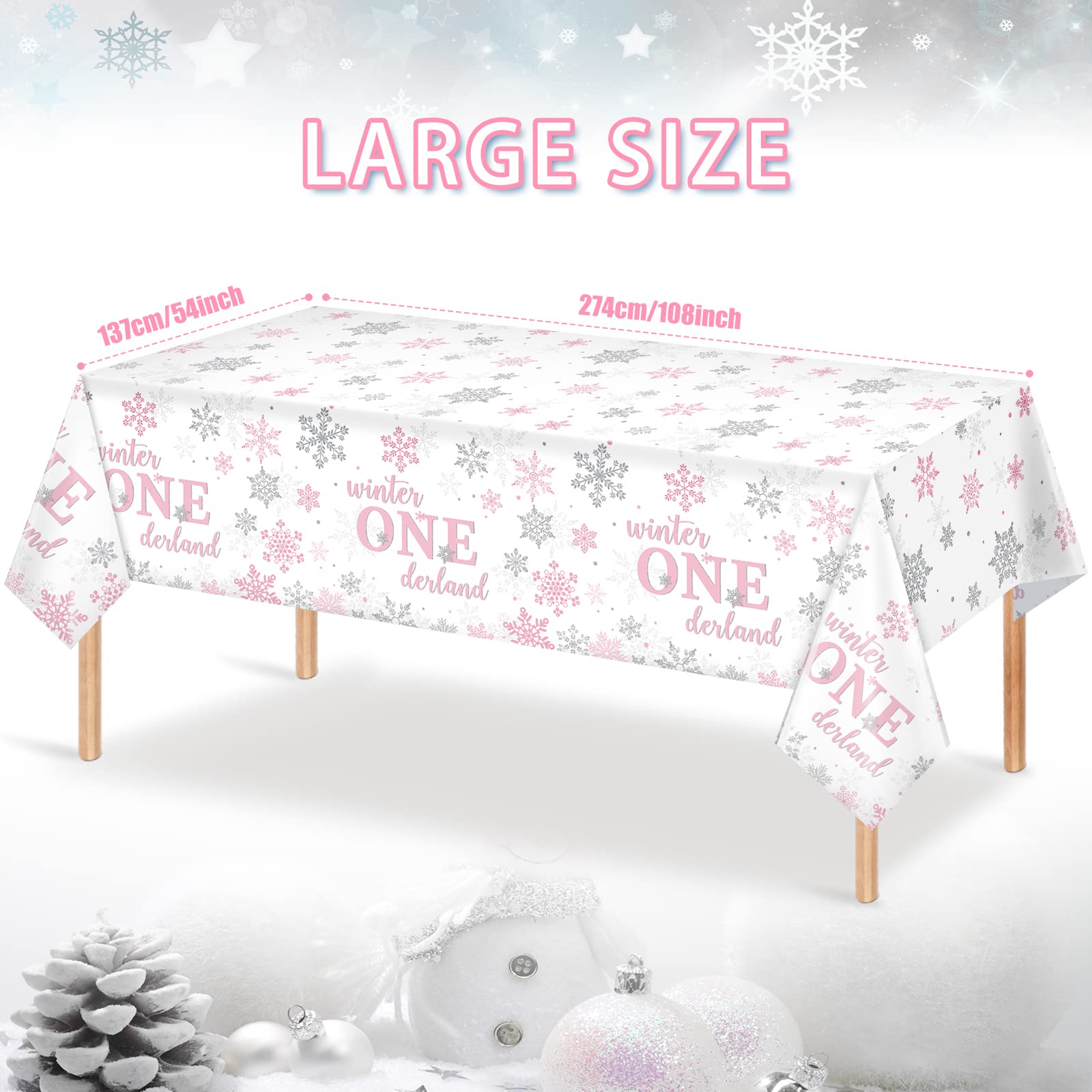 Package Includes :you will get 6pcs winter onederland tablecloths, measuring 54 x 108 inches/ 137 x 274 cm, which is big enough to cover most rectangular tables, suitable for indoor and outdoor parties; The beautiful design will highlight your baby girl 1st birthday party and bring you an unforgettable memory