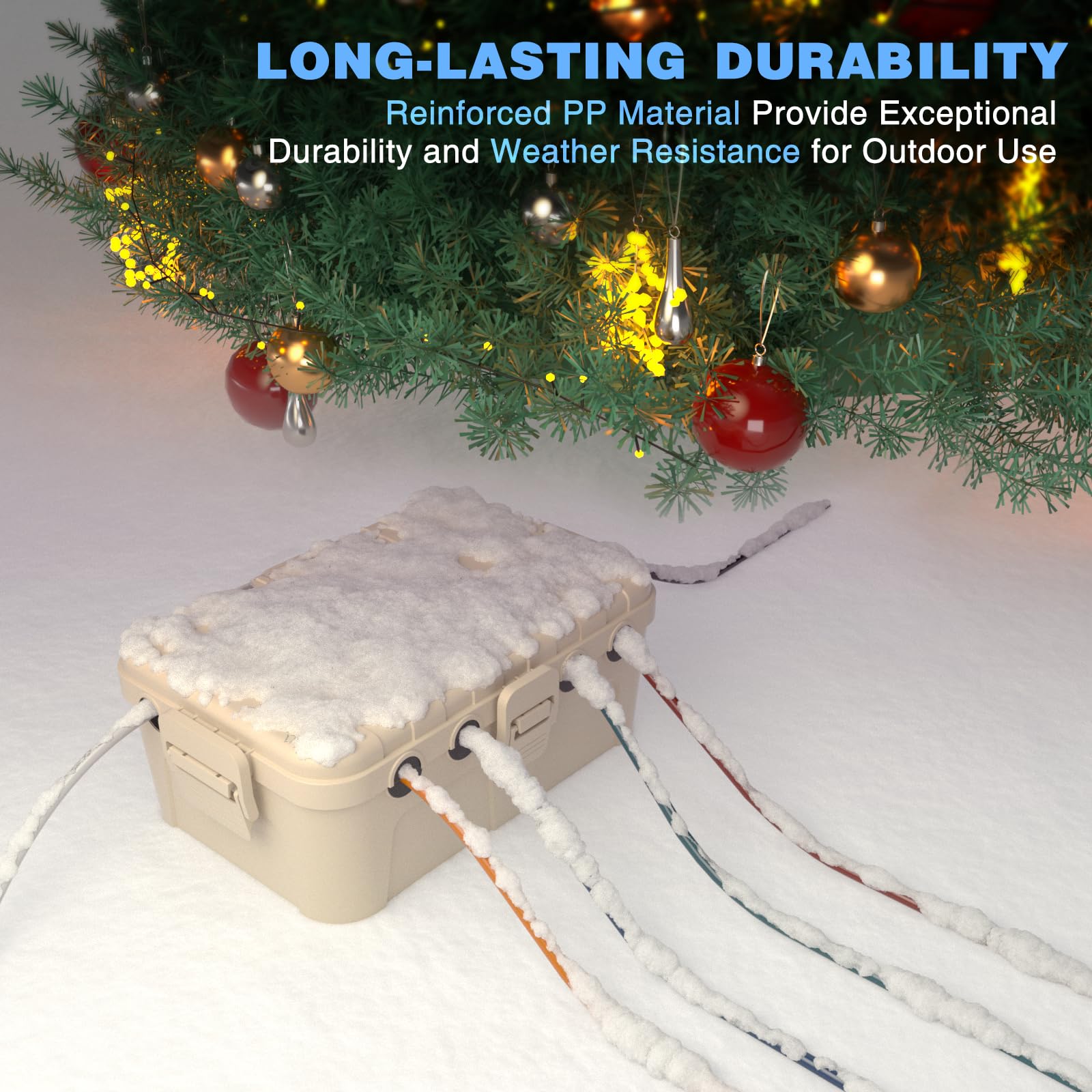Keep outdoor cord connection secure and protected. Large size (12.5 x 8.5 x 5 inch) and 6 cable entry ports, protect outdoor power strip, timer outlet plug, extension cord, large adapter. Great for keeping Christmas inflatable decor running while safeguarding its electrical safety.