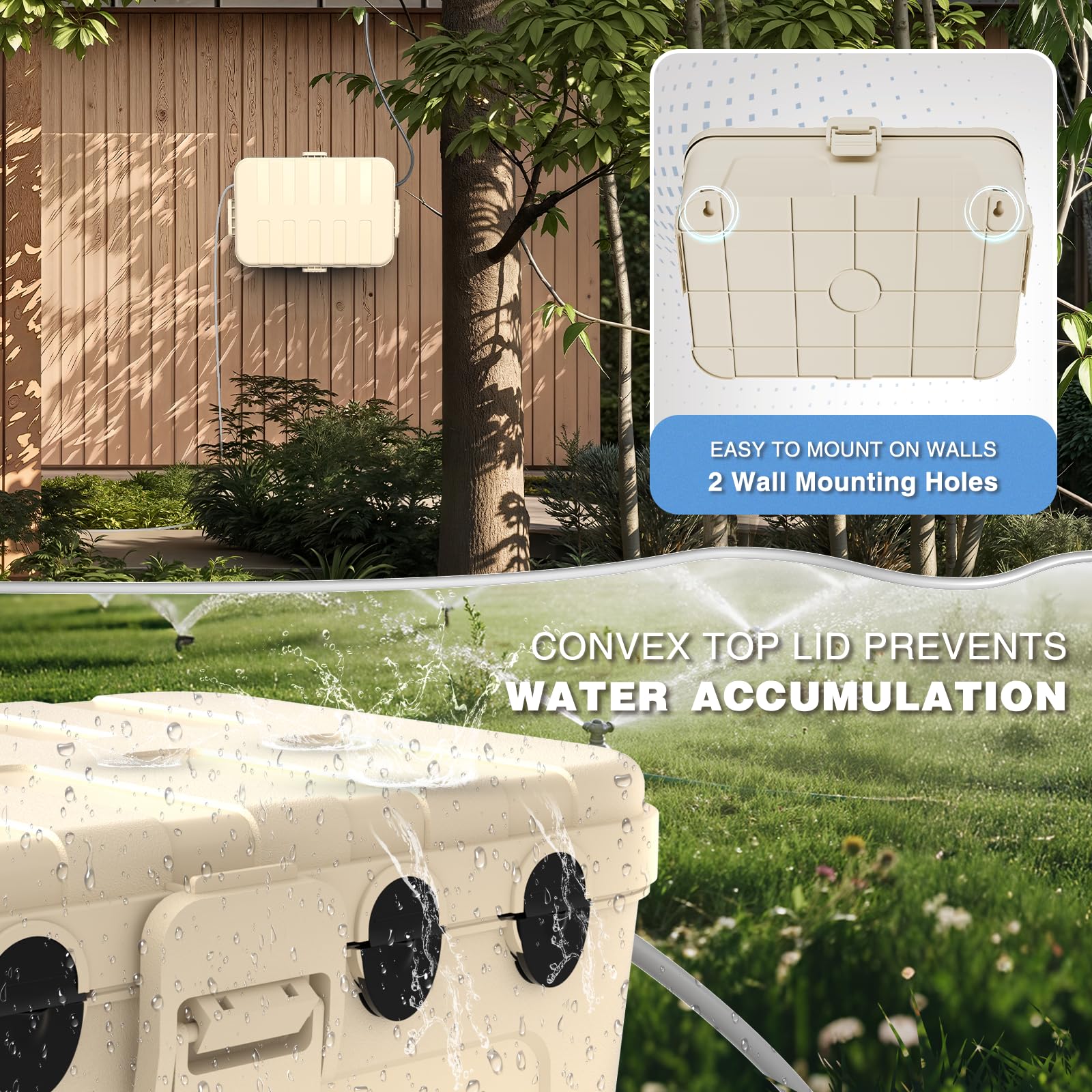 Made with heavy-duty reinforced PP material to withstand rain, snow, water, dust, dirt and more, continuously protecting outdoor connections from electrical hazard.
