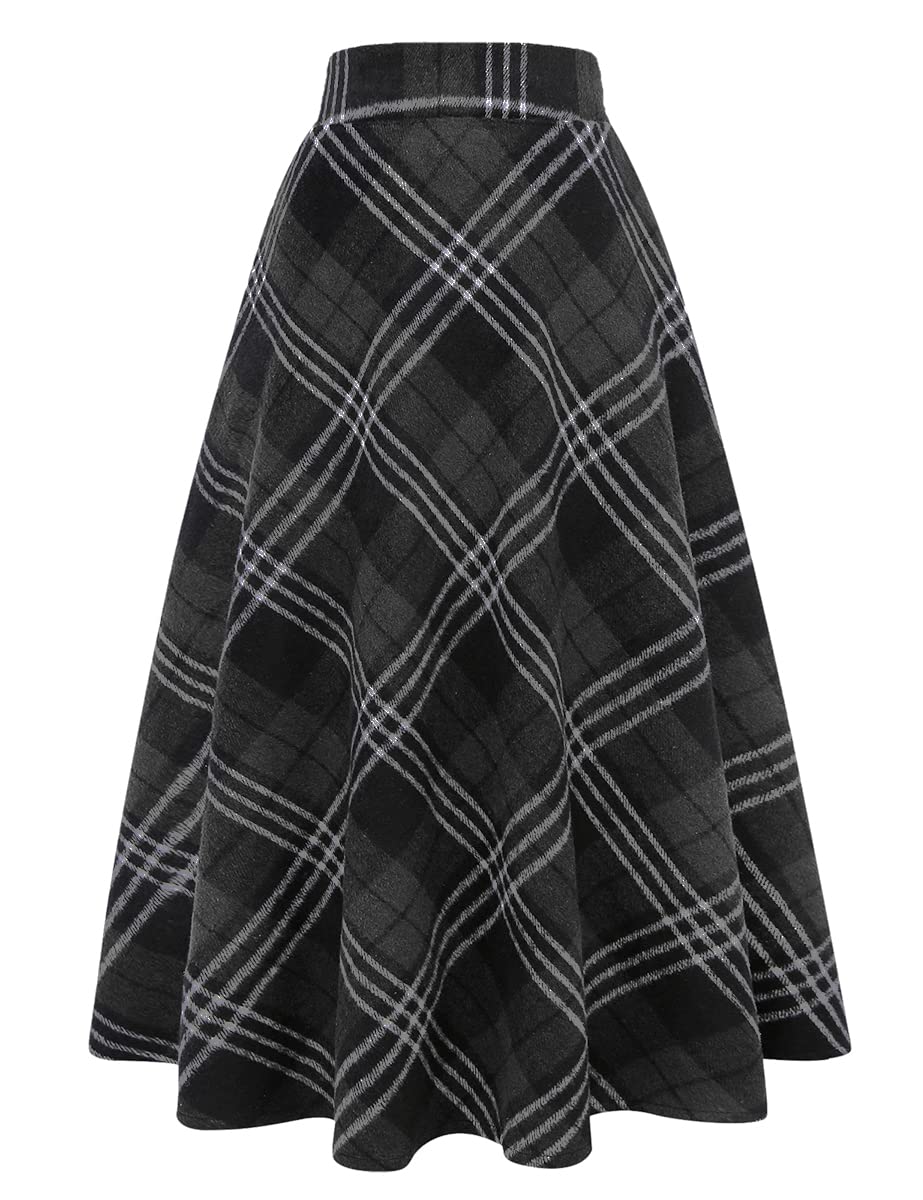 IDEALSANXUN women’s fall/winter wool high waist A-line plaid tartan maxi long skirt.