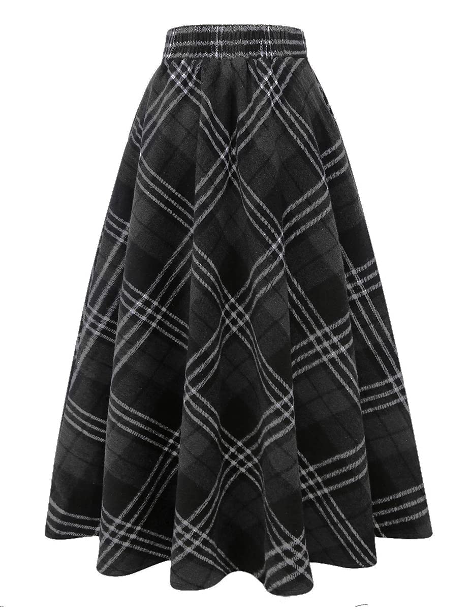 Tartan maxi skirt, warm fabric; New ADD 3XL WOOL PLAID SKIRTS FOR 2022