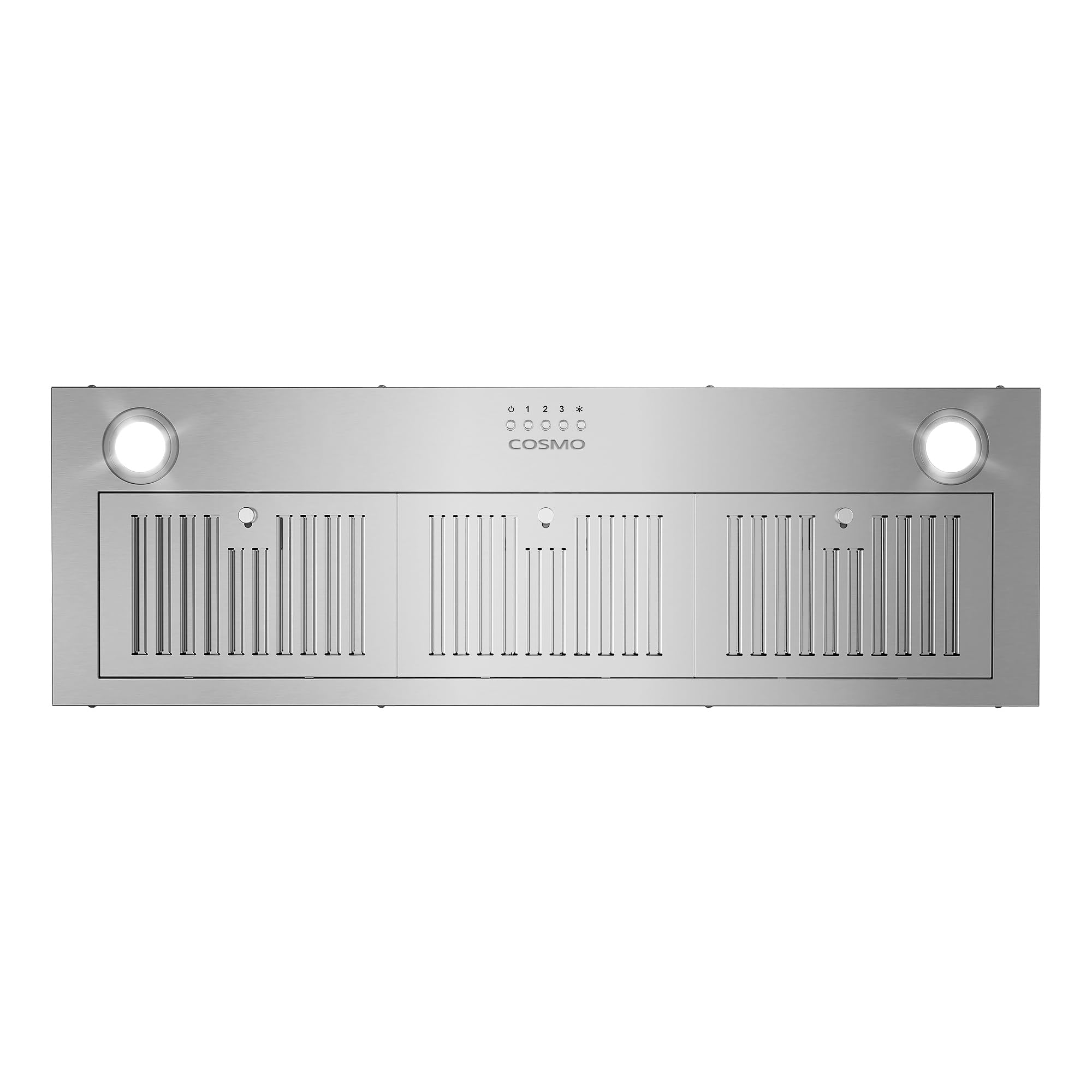 Upgrade your kitchen with Cosmo's COS-36IRHP insert range hood for a modern and seamless design. Fits easily into a custom cabinet enclosure with premium brushed stainless steel built to withstand high heat, grease, oil and steam. Trap grease and cooking odors with 3 fan speeds and illuminate your kitchen with the built-in energy efficient LED lights for easier visibility. Clean-up is a breeze with easily removable, permanent, dishwasher-safe stainless steel filters. Save money year-round with unlimited uses on these filters. A 3-prong power cord is included for easy installation. A better home starts with Cosmo.