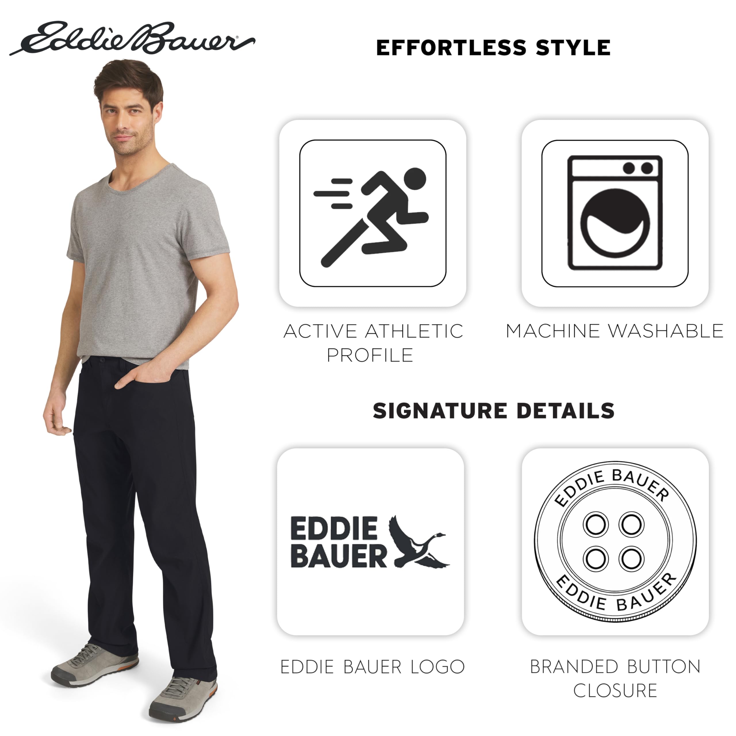 ENJOY AN ACTIVE ATHLETIC FIT: Discover a streamlined silhouette designed for high-intensity movement. The Active Fit sits close to the body without restricting your range of motion, featuring a fixed waist with belt loops and a secure button closure with zipper for a reliable, athletic profile that transitions seamlessly from the trail to casual daily wear.