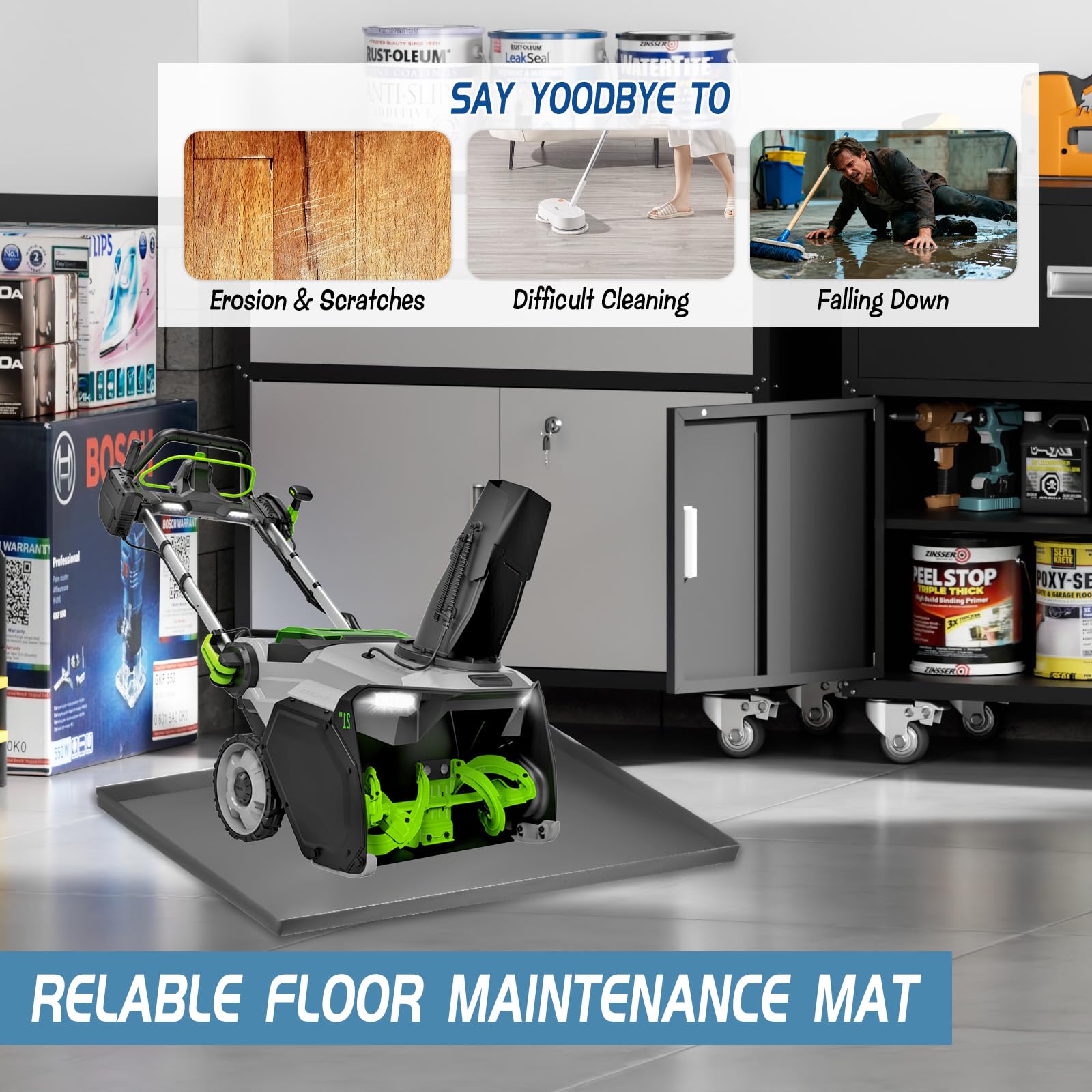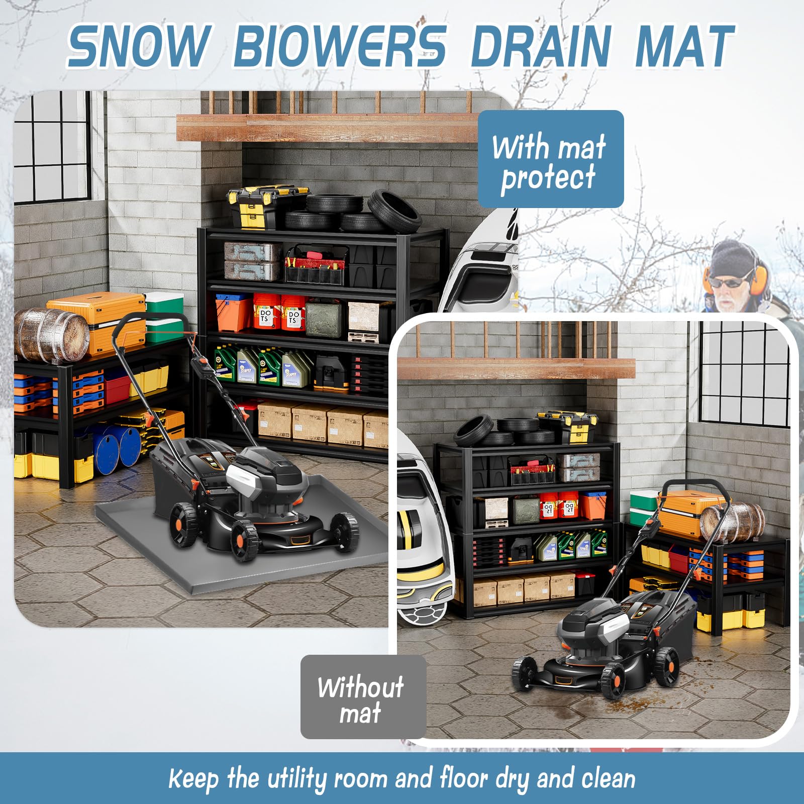 Premuim Material: The snowblower mat for garage is made of quality silicone material, waterproof, durable, flexible, not easily damaged or broken. With non-slip design, the durable mat can ensure that it is stable and does not shift during use.