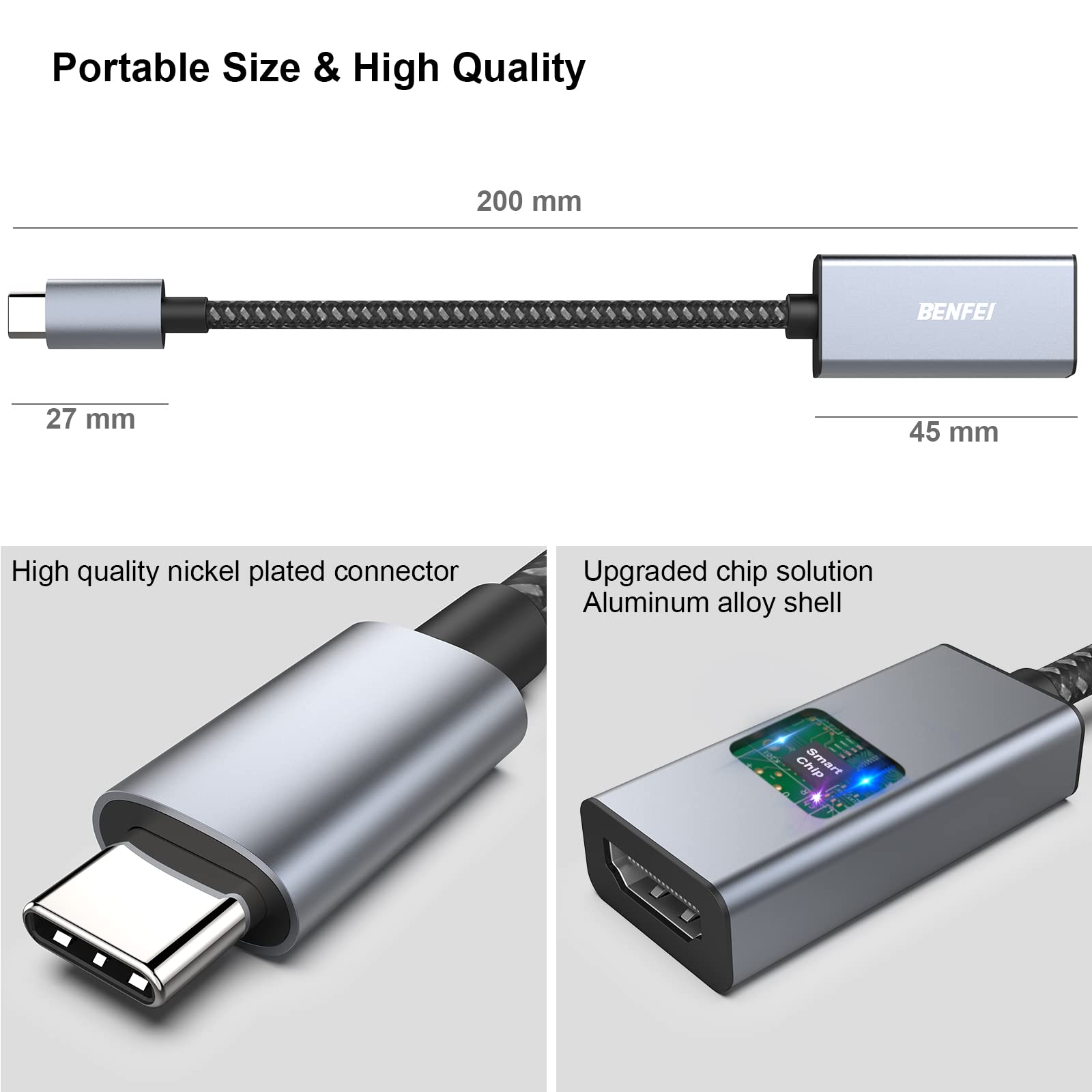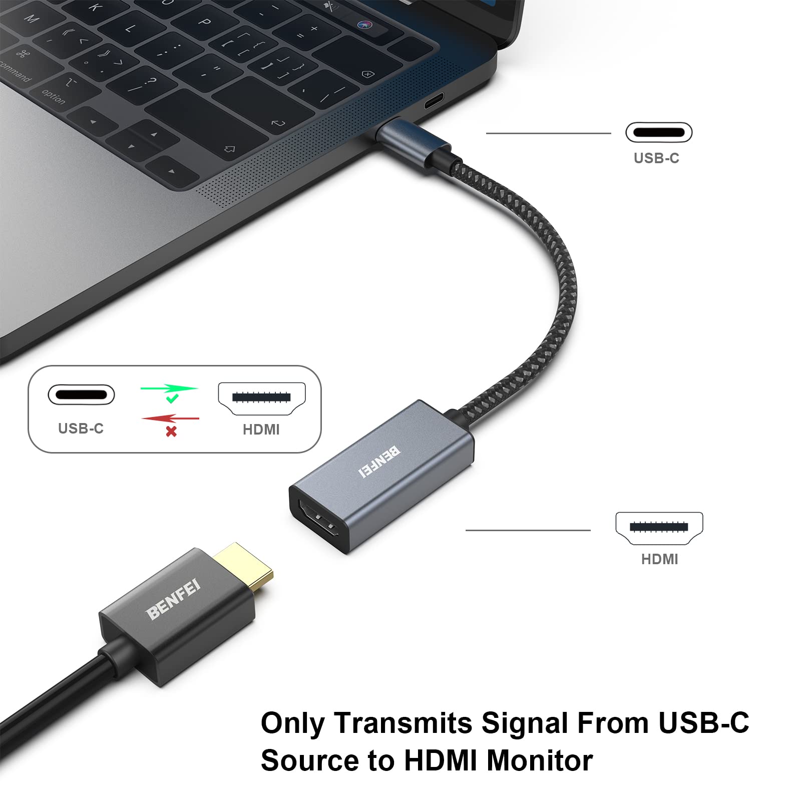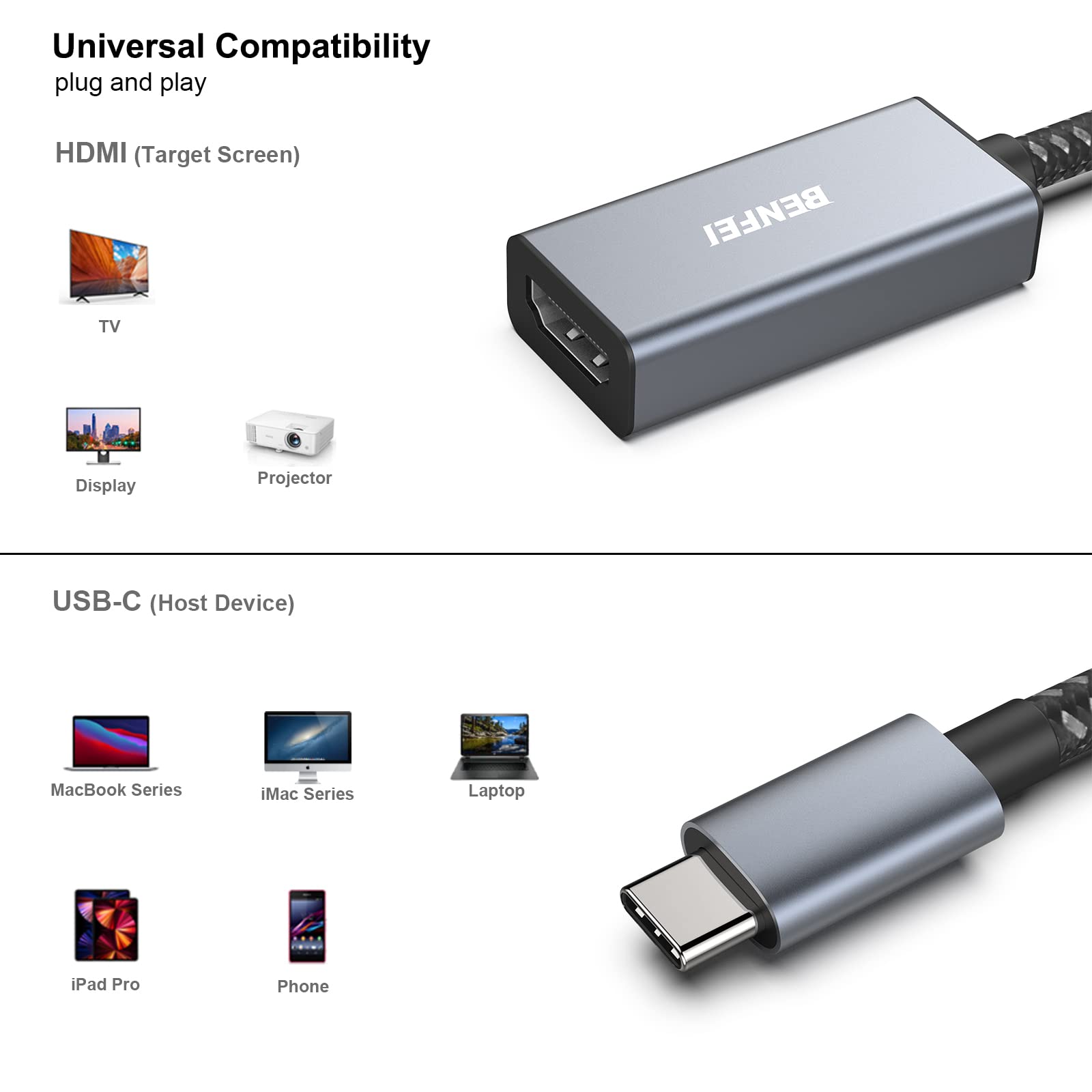 COMPACT DESIGN - The compact-designed portable BENFEI USB-C to HDMI adapter connects a computer, desktop, laptop, or other devices with USB-C port to a monitor, projector, HDTV, or other devices with HDMI port; Tuck this lightweight gadget into your bag or pocket to do a business presentation with your laptop and projector, or extend your desktop screen to a monitor or TV;