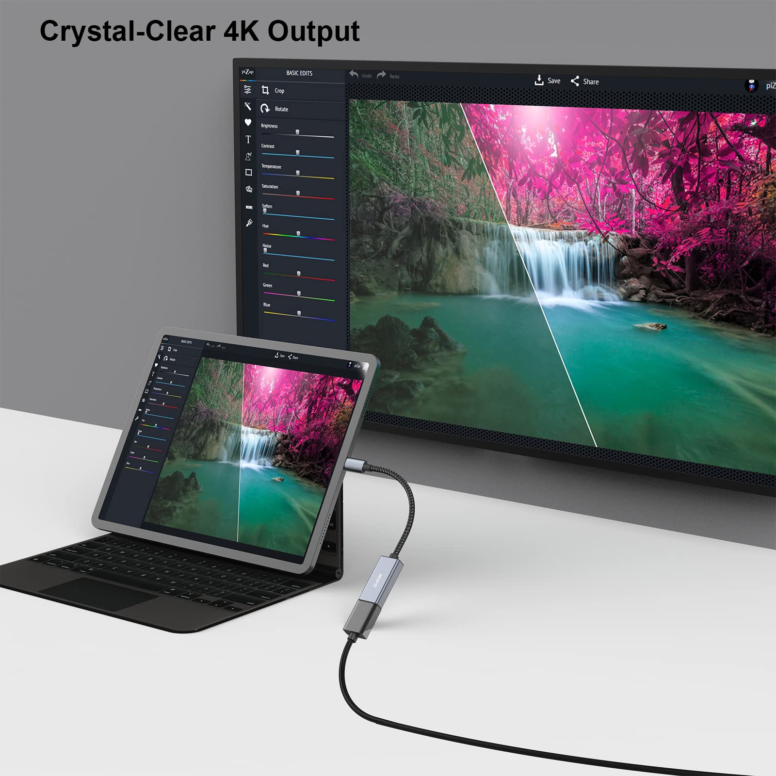 INCREDIBLE PERFORMANCE - The USB-C to HDMI adapter supports resolutions up to 3840*2160@60Hz including, 3840*2160@30Hz, 2K@144Hz, 1080P, 720p, 1600x1200, 1280x1024 for high definition monitors or projectors; Plated USB-C connector resists corrosion and abrasion and improve the signal transmission performance; Molded strain relief increases cable durability