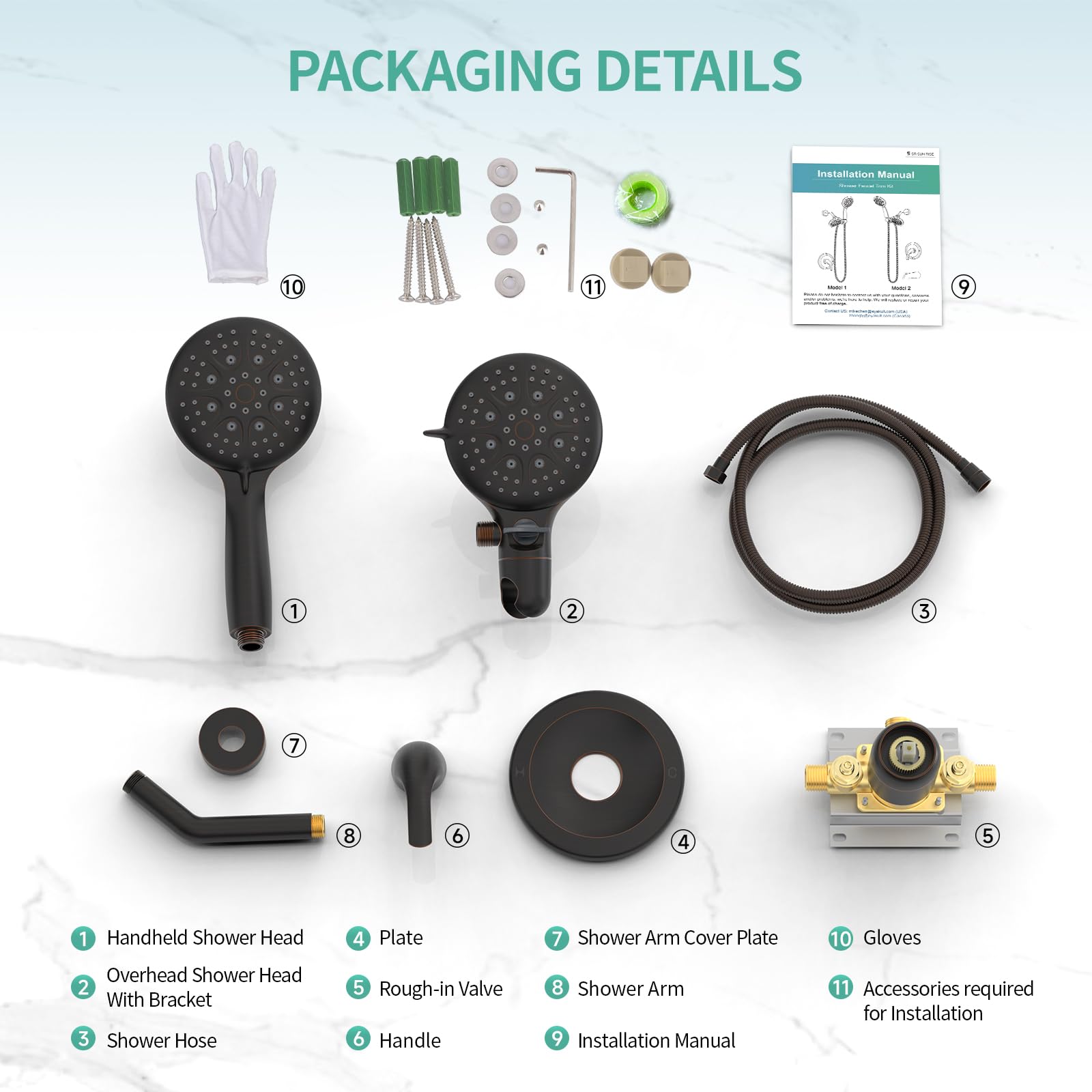 Patented 3-way Diverter: The shower kit has Patented 3-way Water Diverter with Anti-Swivel Lock Nut. Angle-Adjustable Overhead Bracket allows you to flexibly adjust the angle of the handheld shower holder within 180 degree. The shower angle can be easily adjusted to suit children and adults, providing a perfect shower experience for every family member.