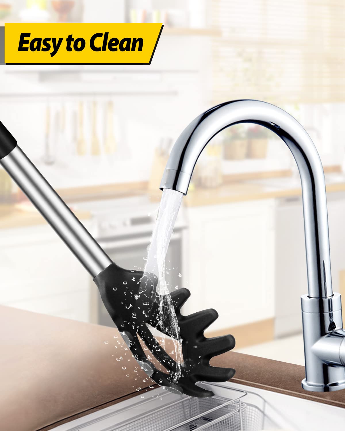 More Safe and Healthy : Our kitchen utensils are made of food-grade silicone, free of BPA;Even at high temperatures, there is no need to worry about melting or deforming;And the soft silicone head won't scratch the coating, it can better protect your pot