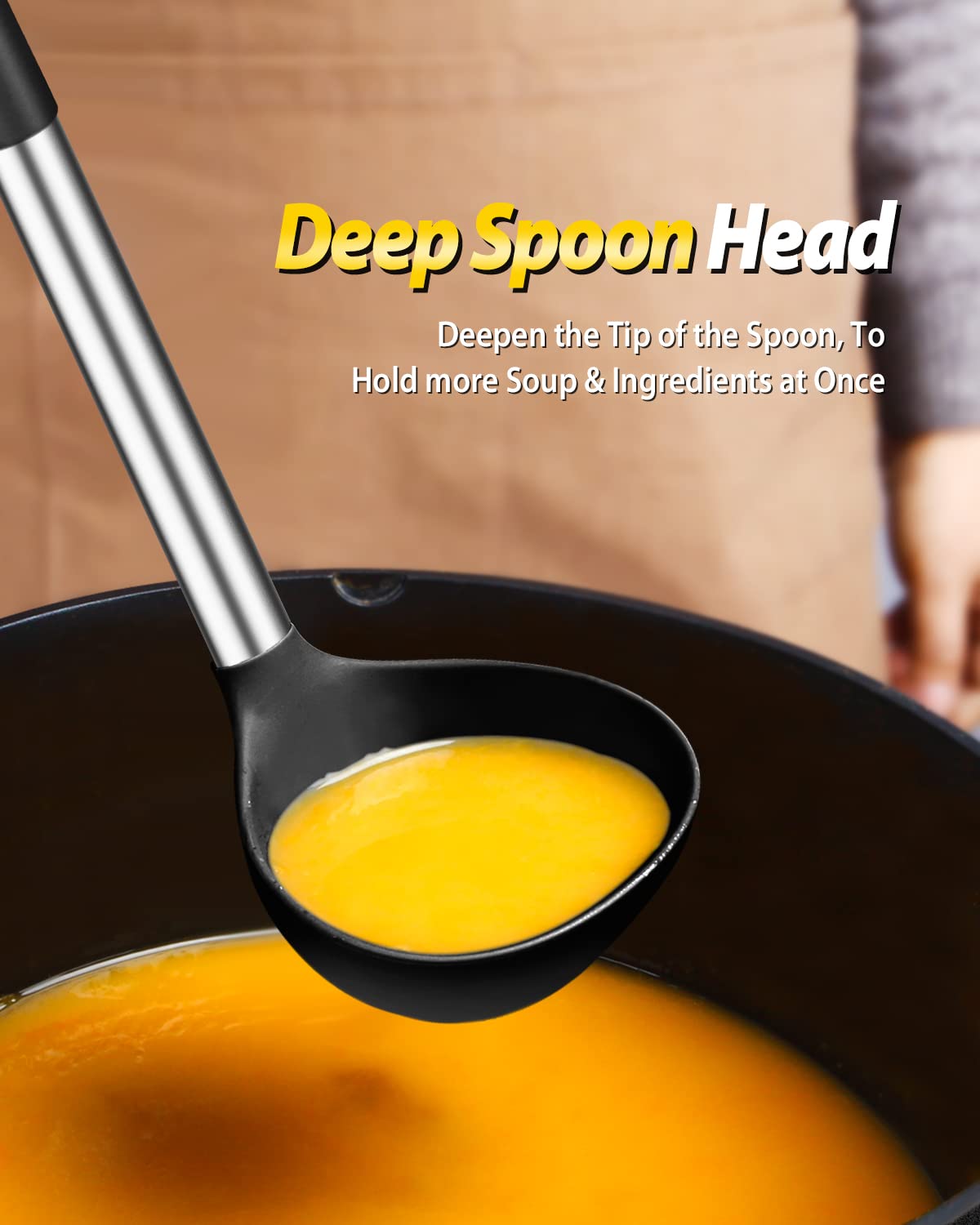 Thoughtful Design : The good-quality 18/8 stainless steel keeps you away from the trouble of kitchen utensils rusting or breaking; This anti-scald silicone handle is not easy to conduct heat and is more comfortable to hold than traditional utensils