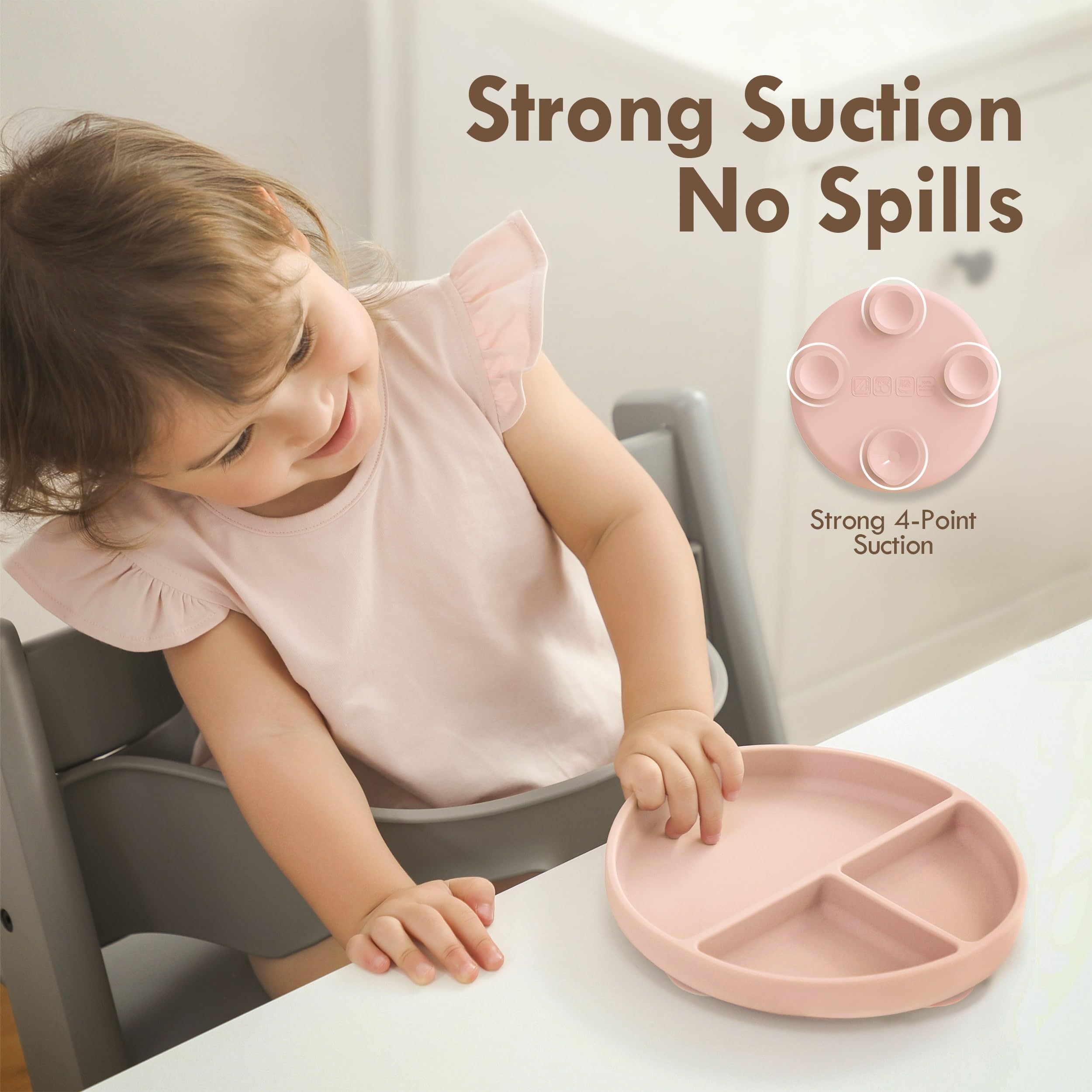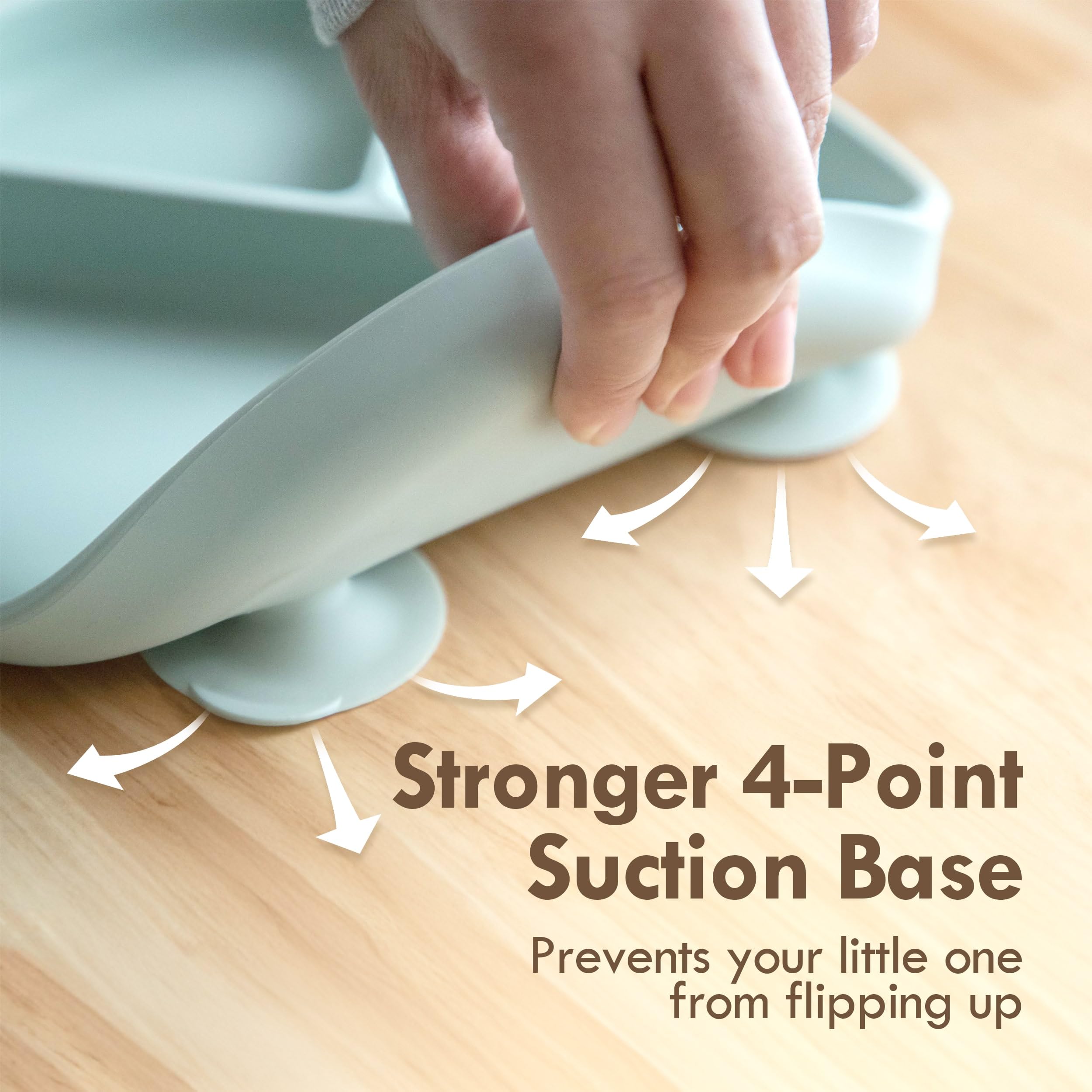 🌿END MEALTIME MESS WITH FOUR-POINT SUCTION - Four suction points securely keep the plate on any flat surface, encouraging independent self-feeding for your child without a mess. If your little one tries to flip the plate and one suction cup pops off, the other three stay put, giving you a chance to redirect their attention before there's food on the floor.