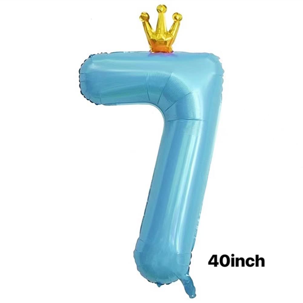 Package includes: 1 * 40 inch blue conjoined crown number 7 balloons,1 straw.