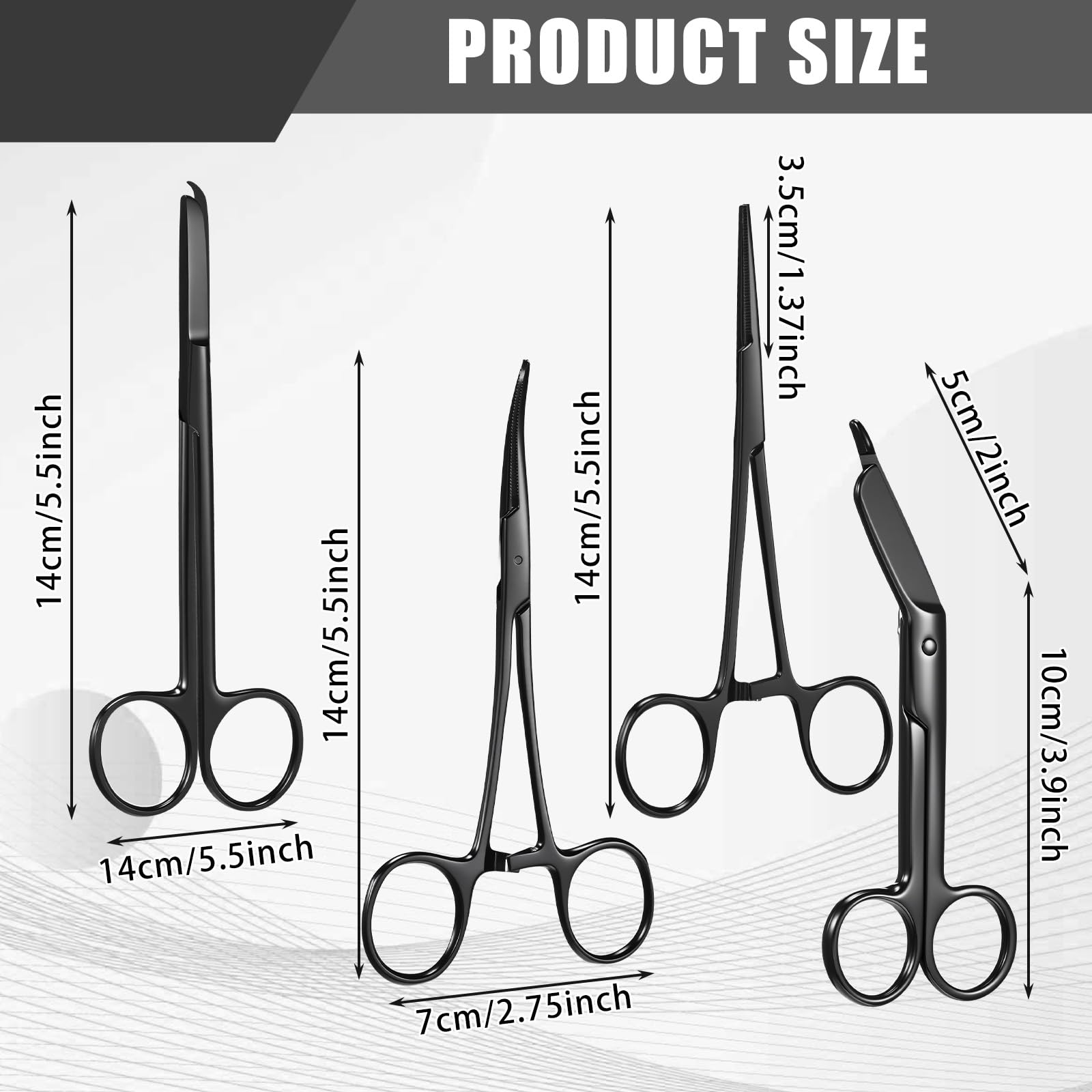 Set of 4 forceps: the package includes a straight and curved pliers, gauze scissors and suture removal scissors; You can choose the type of tools suitable for you in different use environments to make your work go more smoothly