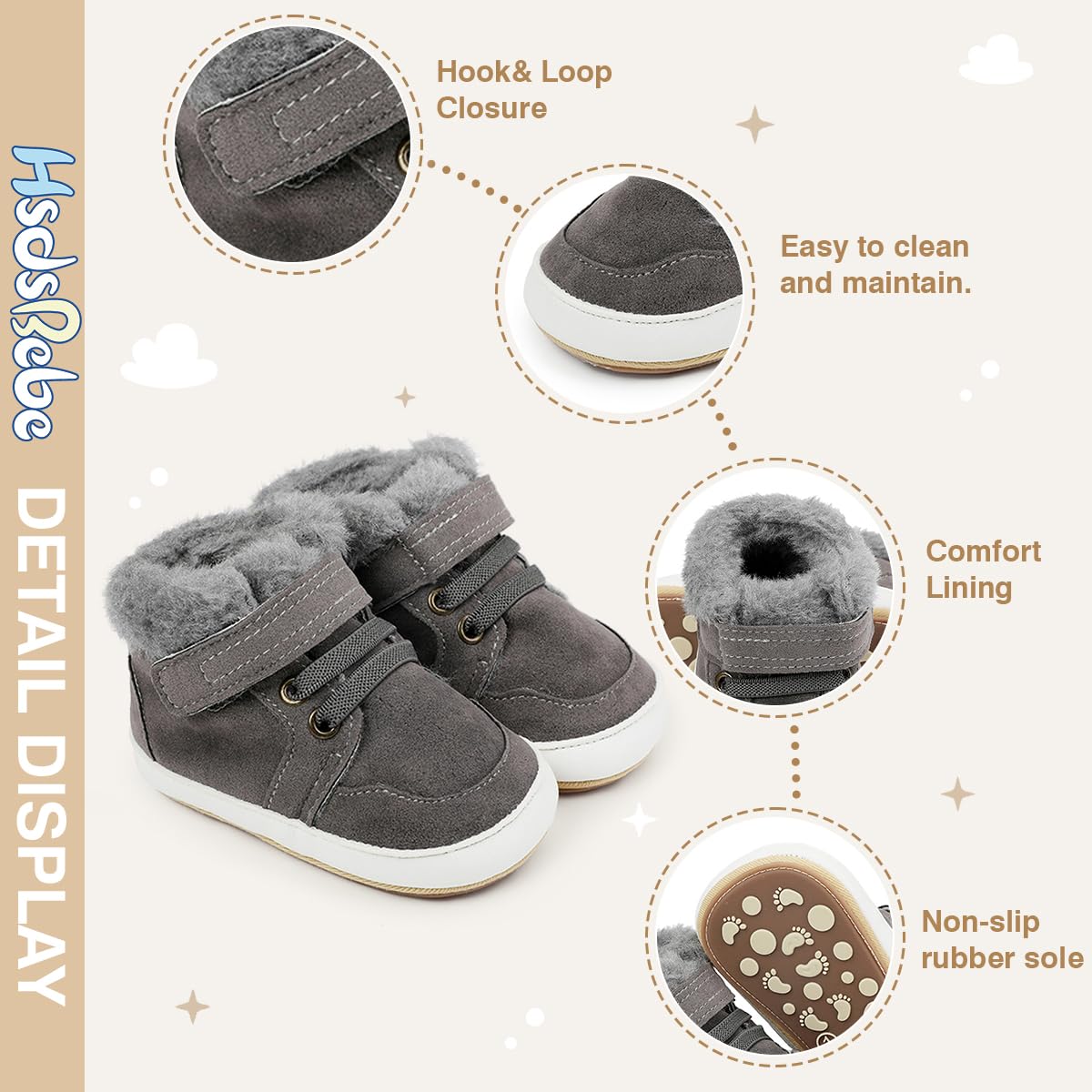 Well made:Pu Leather upper,breathable and sweat absorbing polyester material lining,sturdy rubber sole with grips prevent falls and good support